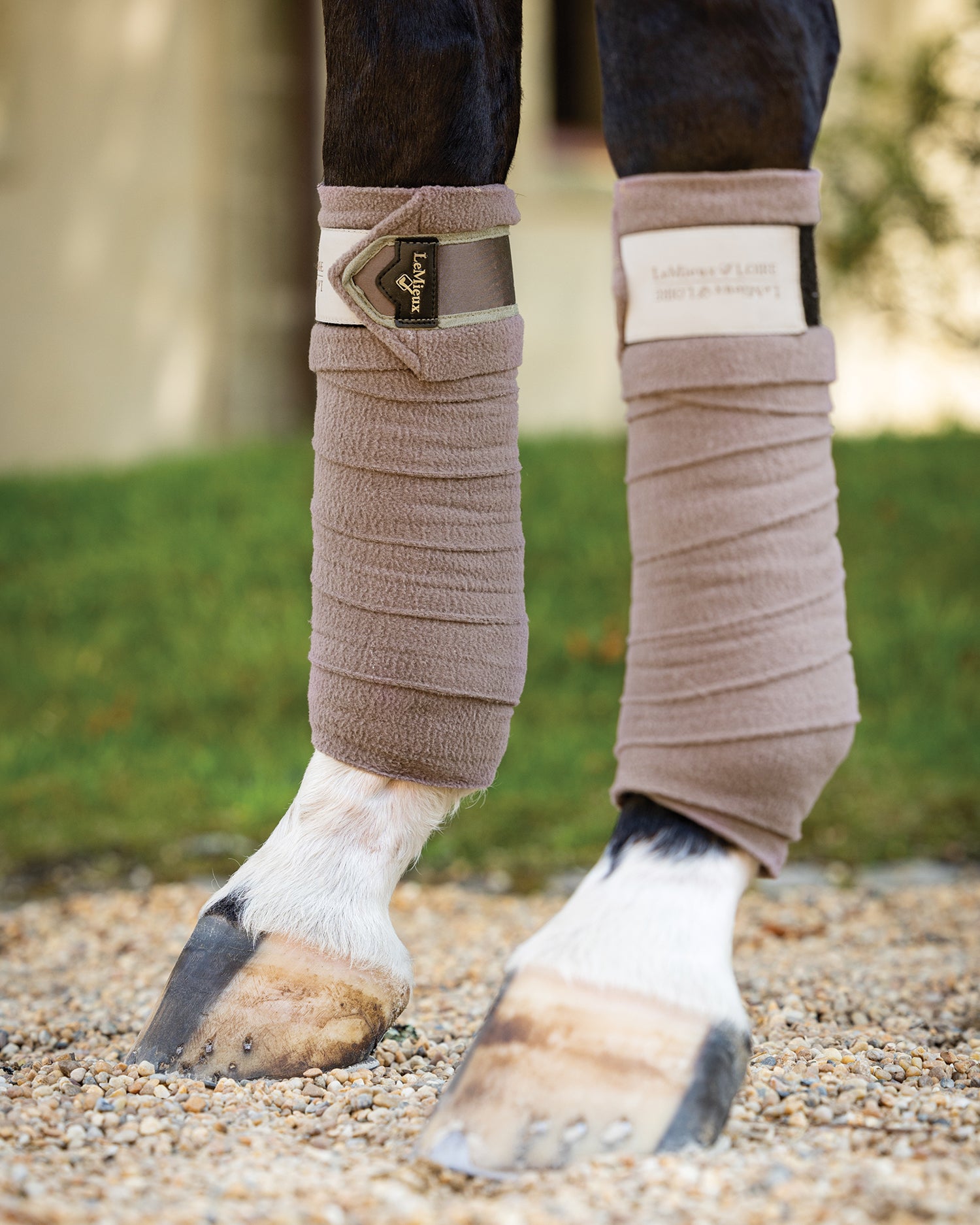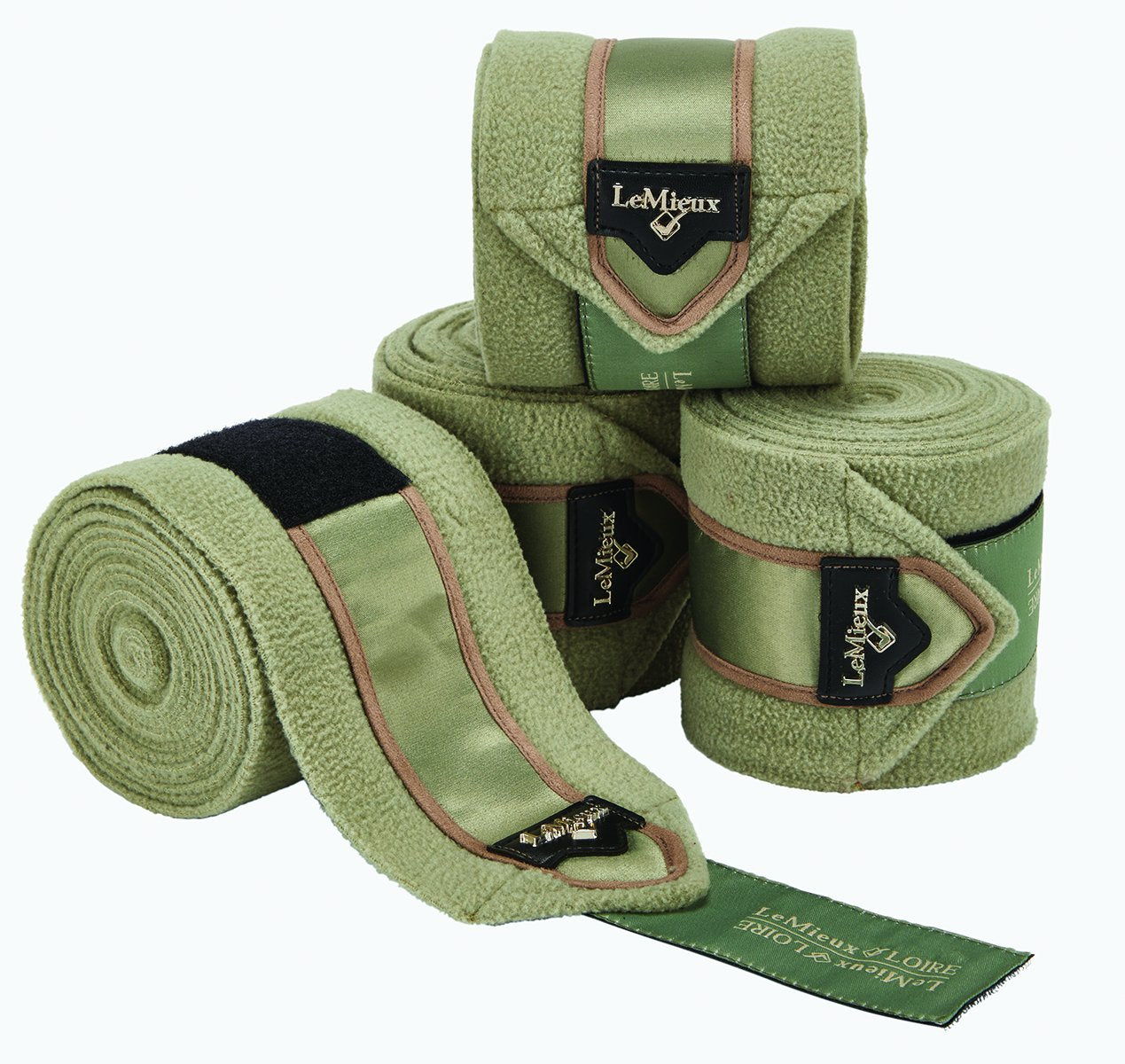 LeMieux® Loire Polo Wraps are cut from premium quality, anti-pill fleece. These beautiful exercise bandages secure with strong hook-and-loop closures that are detailed with satin fabric and topped with a metal logo plaque. Apply the wraps on their own or with exercise liners for extra protection. Set of four polo wraps comes in a reusable zippered case.