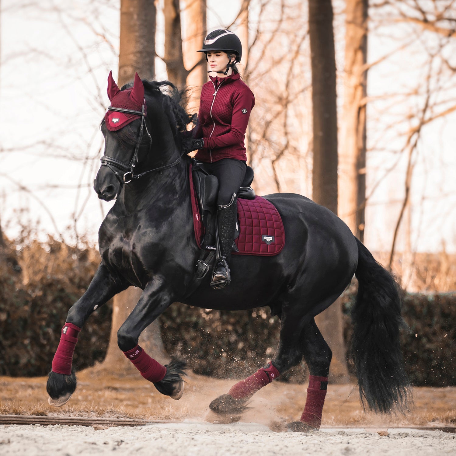 From the LeMieux® Loire Collection, these classy Loire Satin Polo Bandages are made of pill-resistant, high-quality fleece that maintains a smart look. Satin overlay accents the hook-and-loop closures. Each is topped with an embossed metal brand plaque.