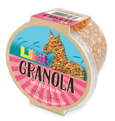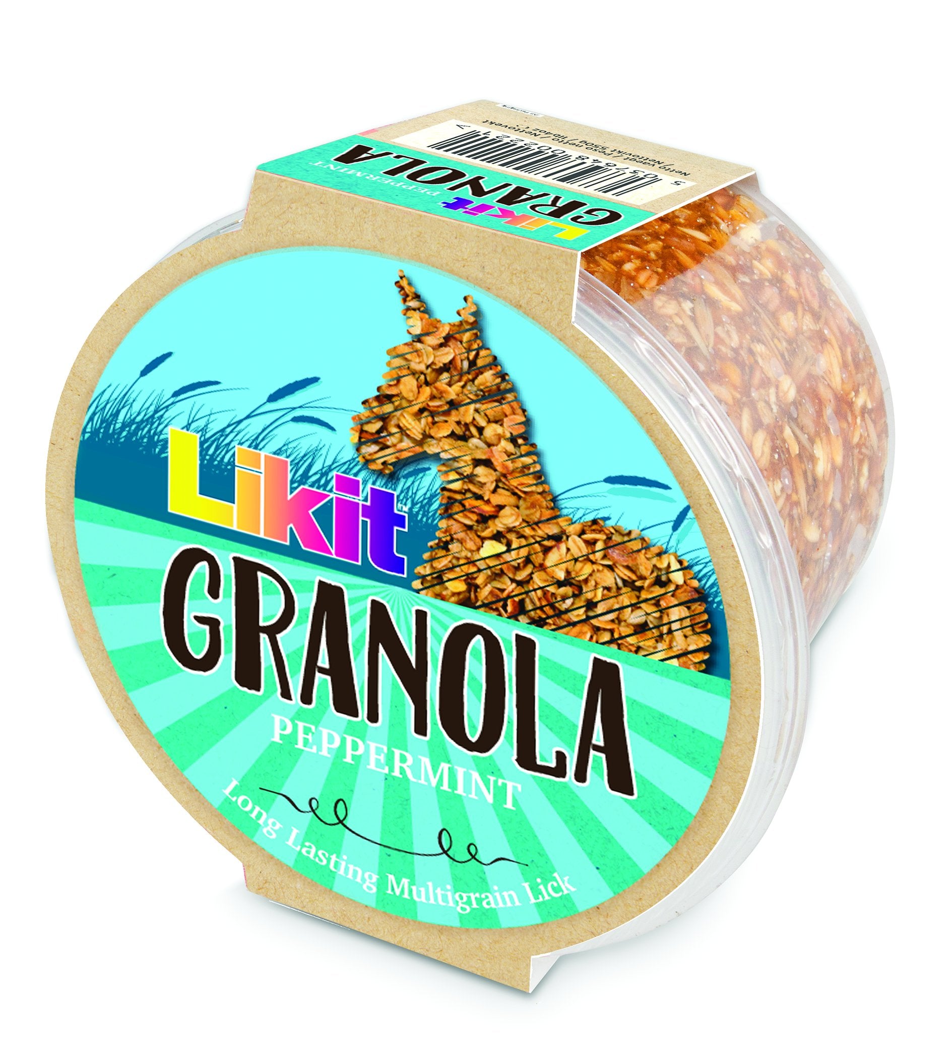 The Likit™ Granola Refill is a long-lasting lick packed with tasty grains including, maize, wheat, barley and oats. It fits into a Likit Holder or Boredom Breaker to help relieve your pony or horse’s boredom or stress when stabled or simply as a fun treat. The rock-hard formulation of Likit Granola means it will last much longer than regular Likits.