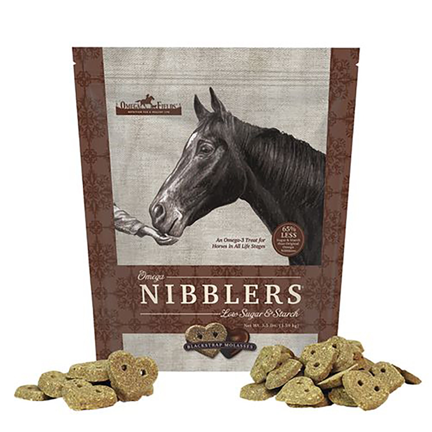 Feed 15 Omega Nibblers treats per day as an alternative to ½ cup Omega Horseshine® for a 1,200 pound horse.