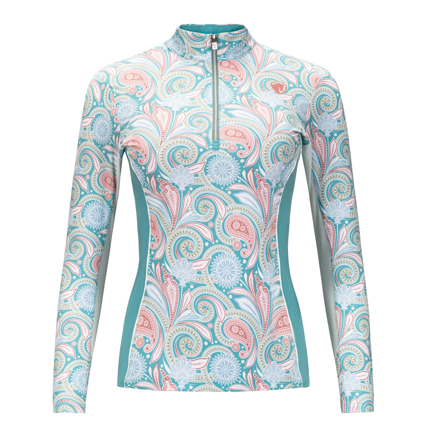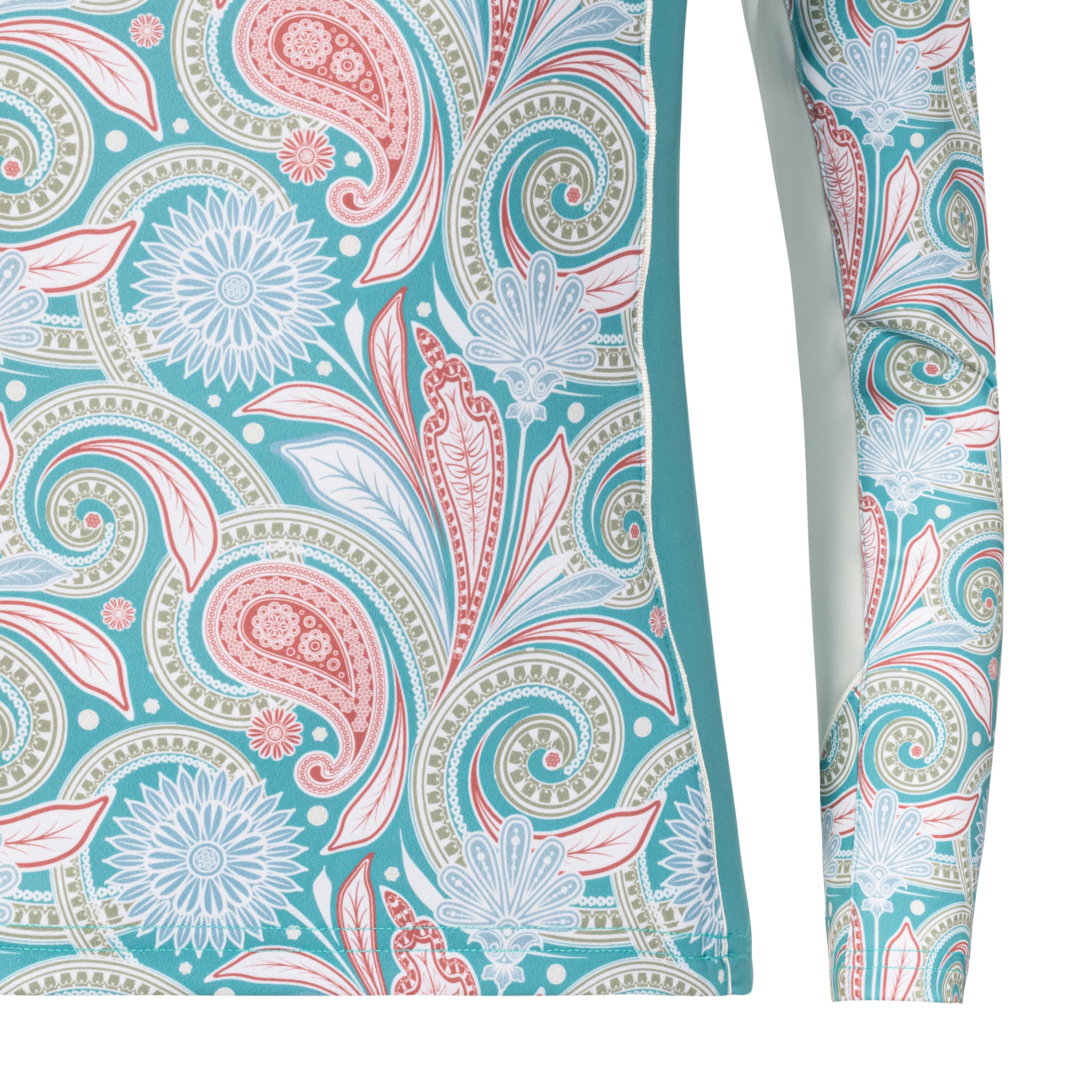 The Viva Quarter-Zip Long Sleeve Shirt is made of Arista’s lightest weight performance fabric in a fresh paisley print. Moisture-wicking technology keeps you dry, and high spandex content ensures your freedom of movement. The surface of the fabric is lightly brushed and smoothed to give you a luxuriously soft feeling and to eliminate chafing. An environmentally friendly finish ensures your shirt stays fresh, hygienic and odor-resistant.
