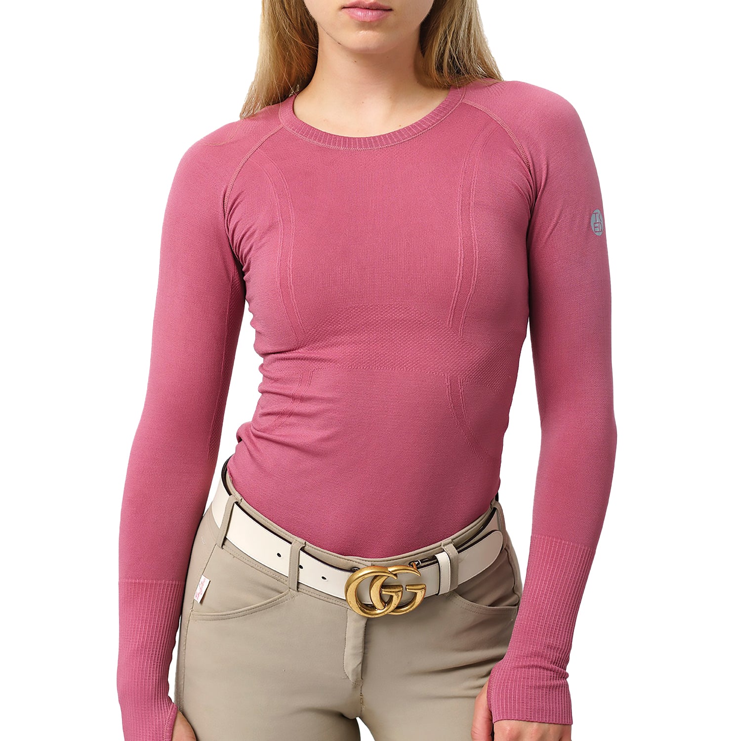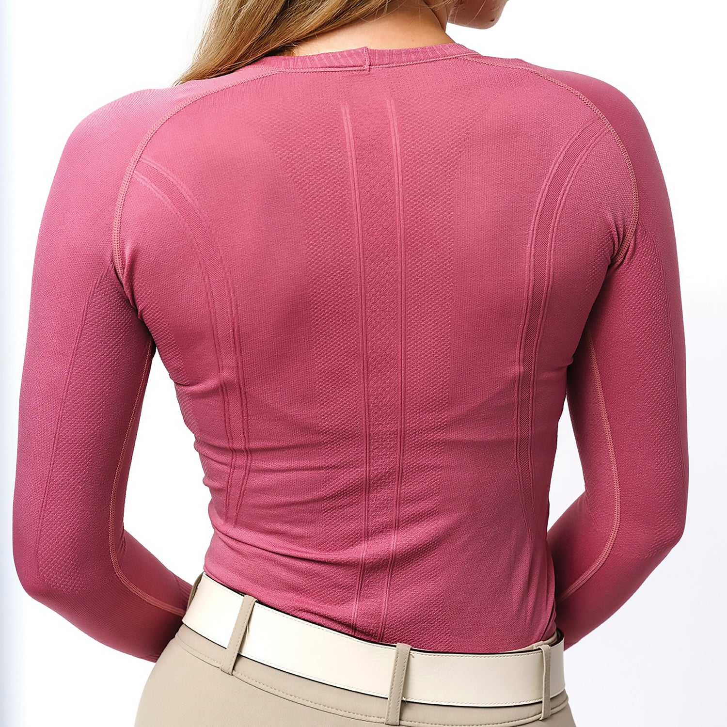 Full coverage, four-way stretch and moisture wicking make the TKEQ Kennedy Seamless Long Sleeve Top an equestrian essential. In a comfortable, flattering, seamless body design, this ultimate training shirt also provides breathability and helps block UV rays.