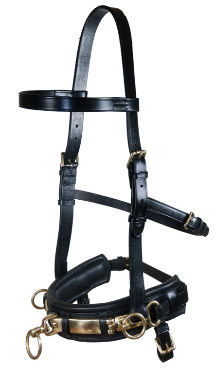 Finely crafted Lunge Caveson in supple, flat, smooth-finish black leather offers the ultimate in quality and strength. Designed with solid brass hardware and a broad, generously padded noseband, it provides a sound method of control when lungeing your horse. The double-buckle crown and adjustable chin strap help to ensure a proper fit, while the jaw strap helps prevent eye contact.