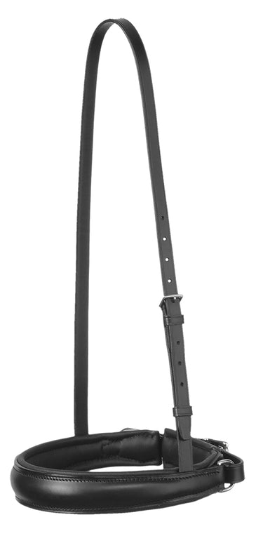 The Otto Schumacher French Crank Caveson is fully padded around the nose and jaw with soft, thick leather padding. Handcrafted in Germany of the finest quality leather, this classic, elegant caveson is available in contrasting white or self-padded black. The wide noseband measures approximately 1.5" in width, and the Herm Sprenger® roller buckle makes it easily adjustable. Designed for traditional crown bridles, it has one buckle on the left side. Stainless steel hardware.