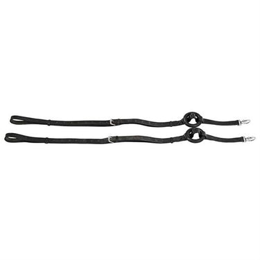 Waldhausen Leather Side Reins feature a Rubber Donut to provide the elasticity to let your horse keep a steady contact and stretch down while lunging. Long loops with holes and buckle allow for an adjustment of 37" to 45" from bit to girth attachment.