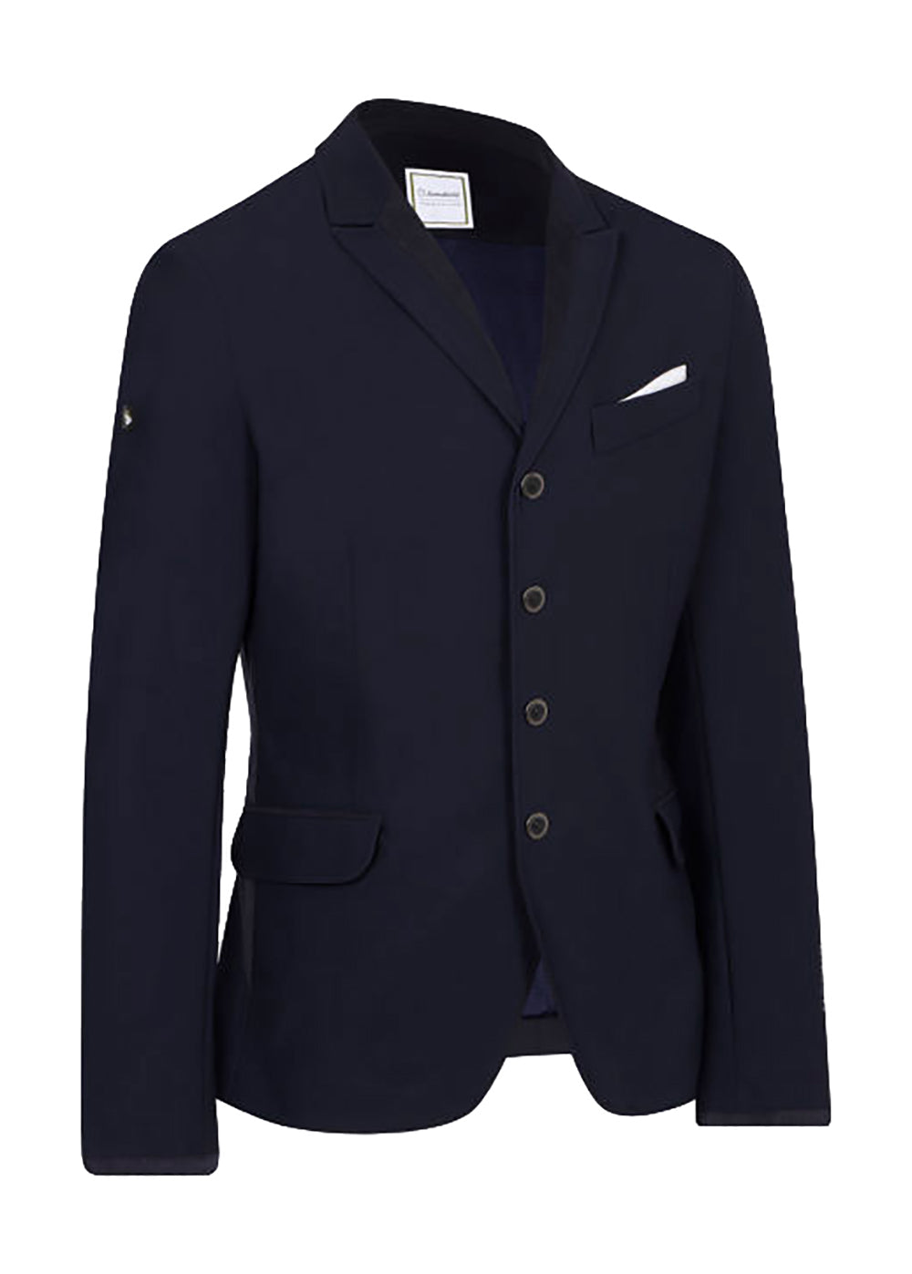 The shoulders and sides of this men’s show coat are made with tonal perforated genuine Alcantara®, which carries over to the lapel and pocket trim as accent details. A lining of high-stretch fabric and mesh guarantees breathability.