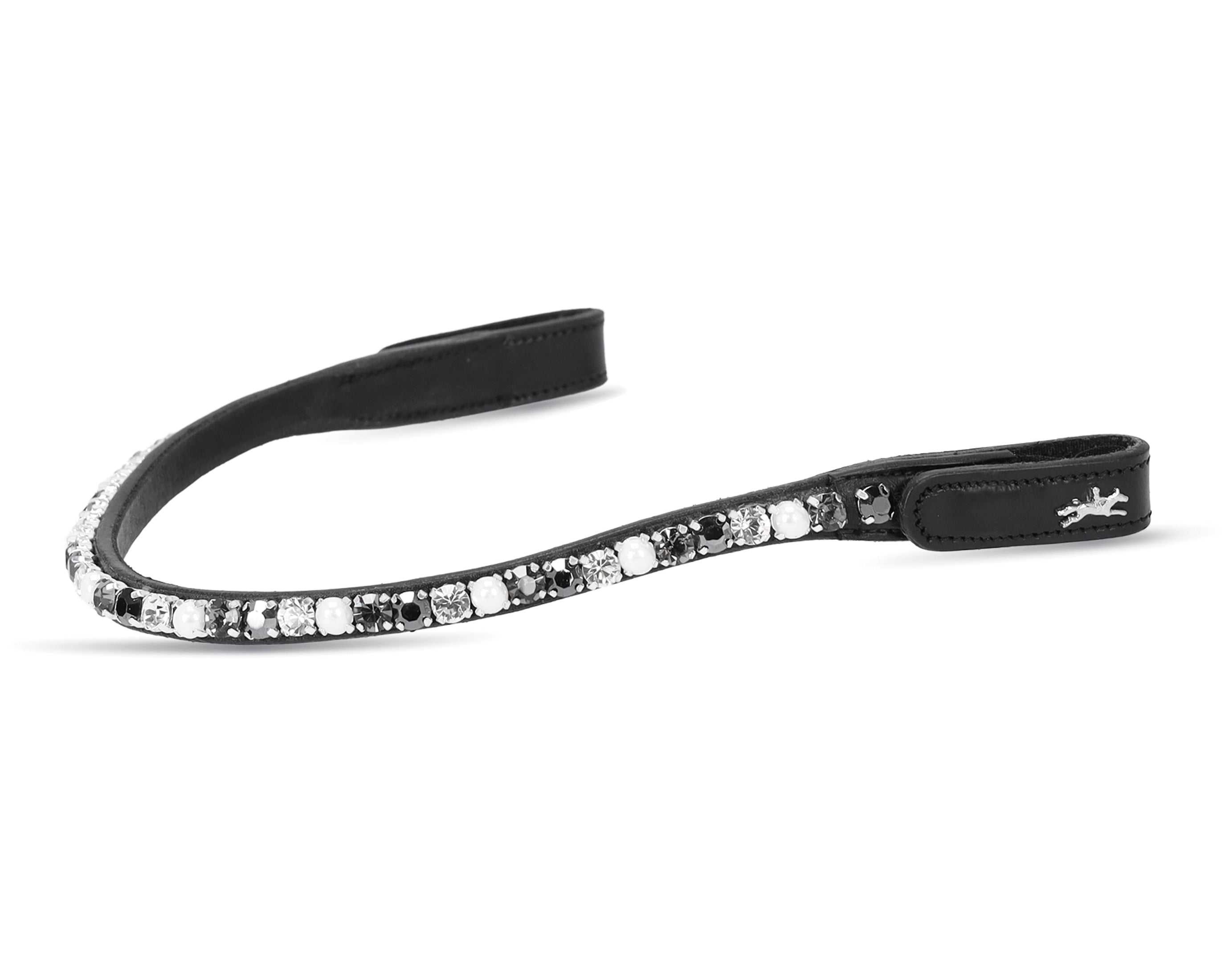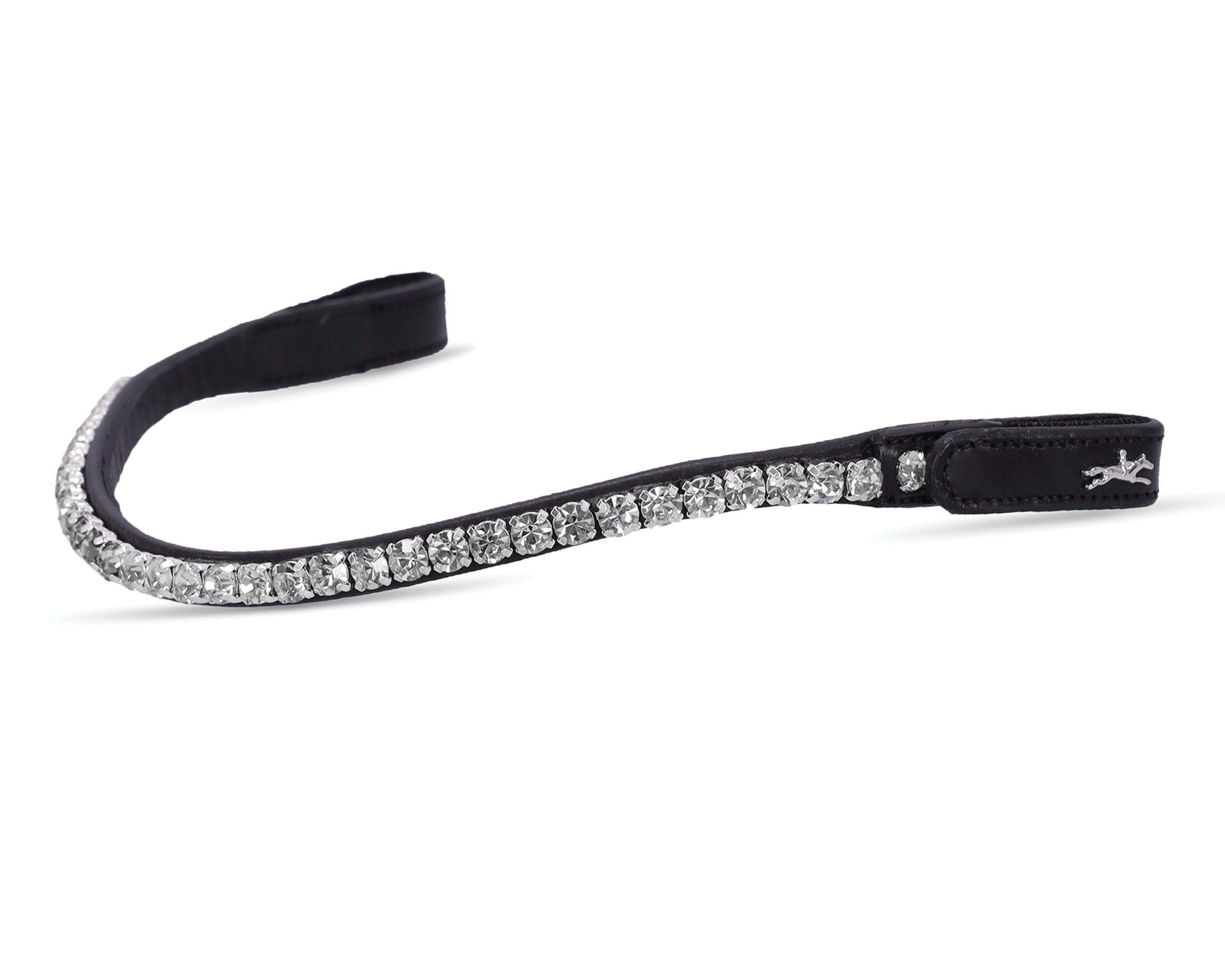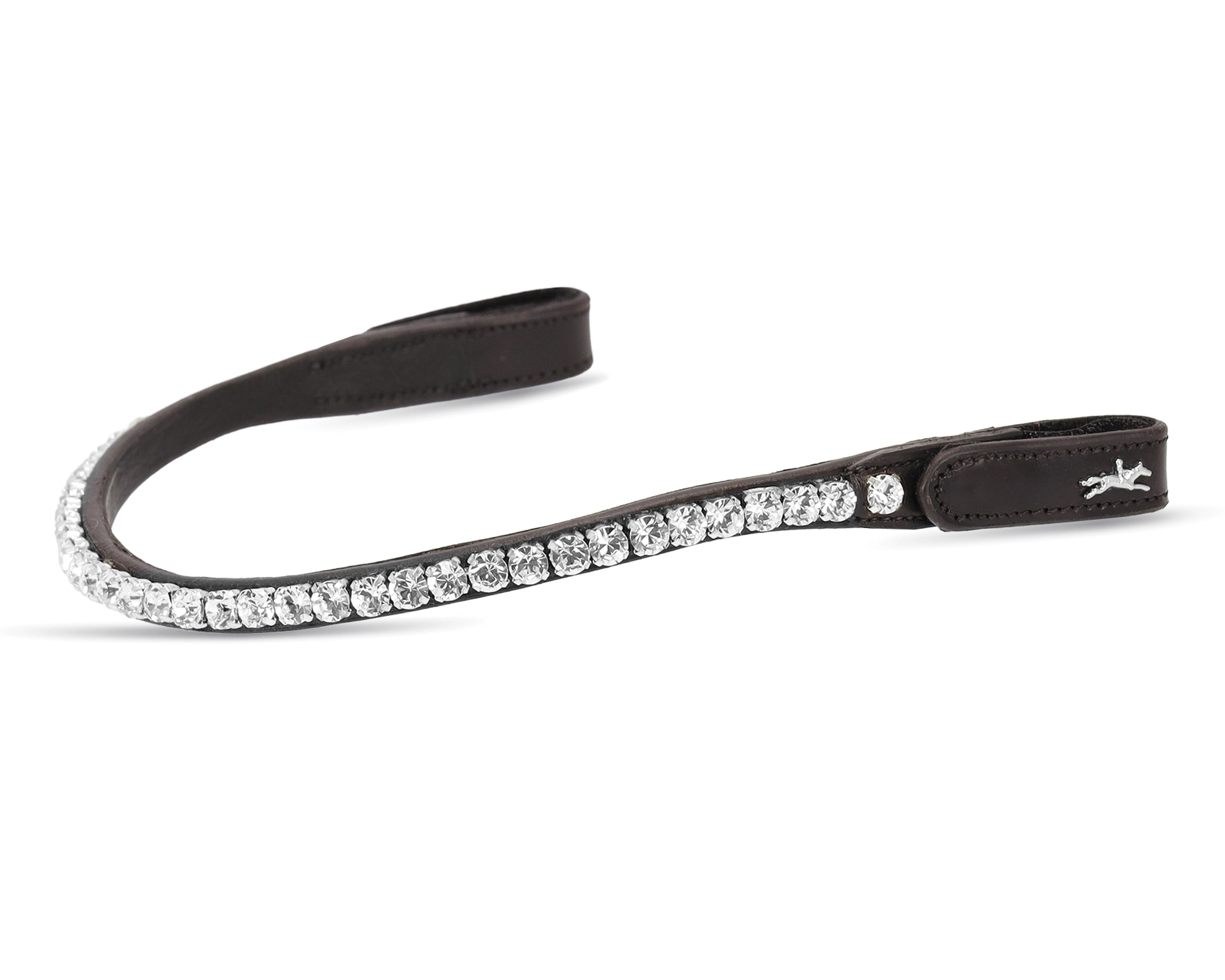 Schockemöhle Siena Browband is anatomically shaped for comfort and has snap fasteners to make changes quick and easy. Refined browband can be easily and conveniently replaced using the press stud with the additional Velcro® fastener. Extra large crystals add dazzling bling!