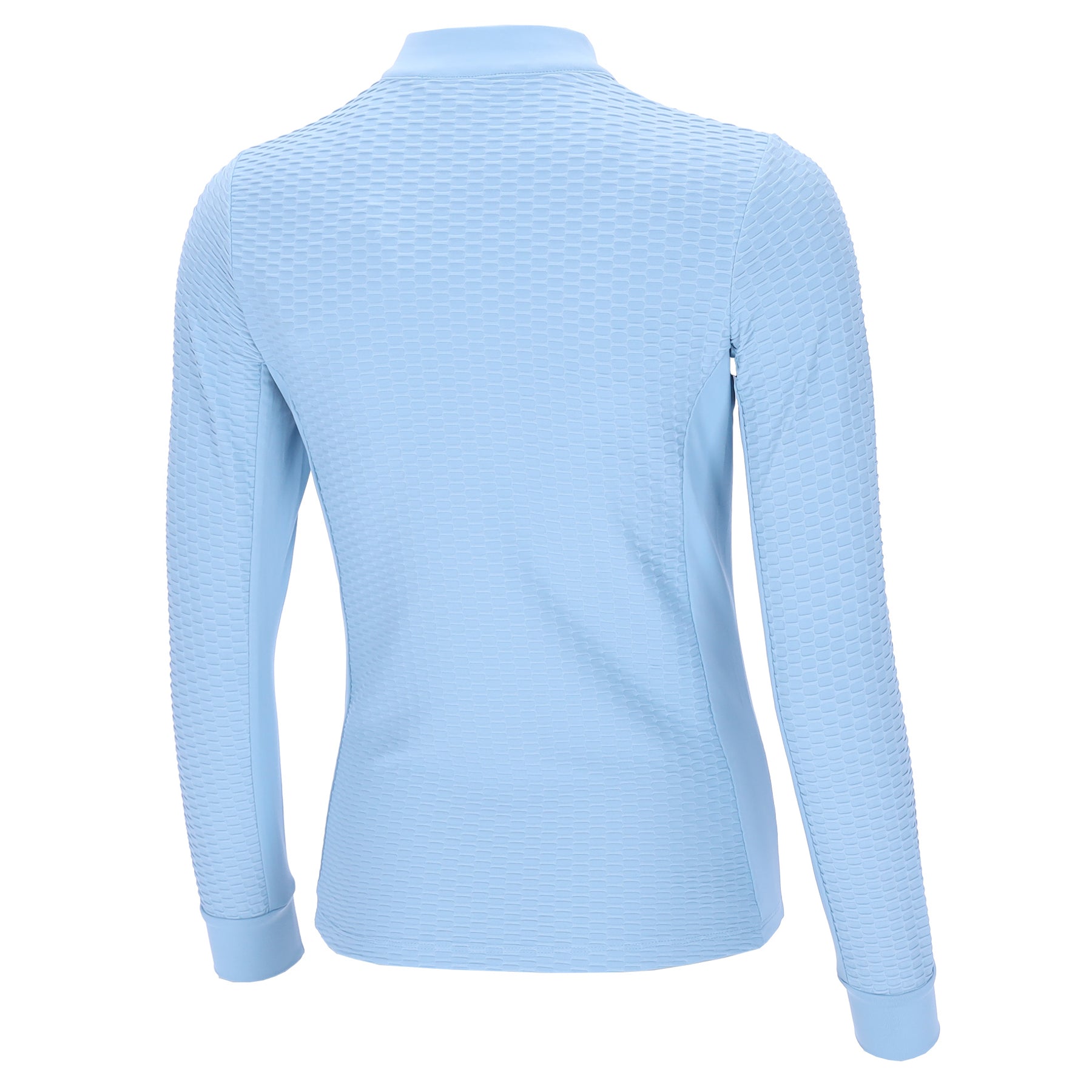 Beautifully designed with a textural pattern woven into the fabric, the Schockemöhle SP Gail Long-Sleeve Shirt elevates the classic training shirt style. Stand-up collar with horse logo and rhinestone motif is structured to keep you looking great.