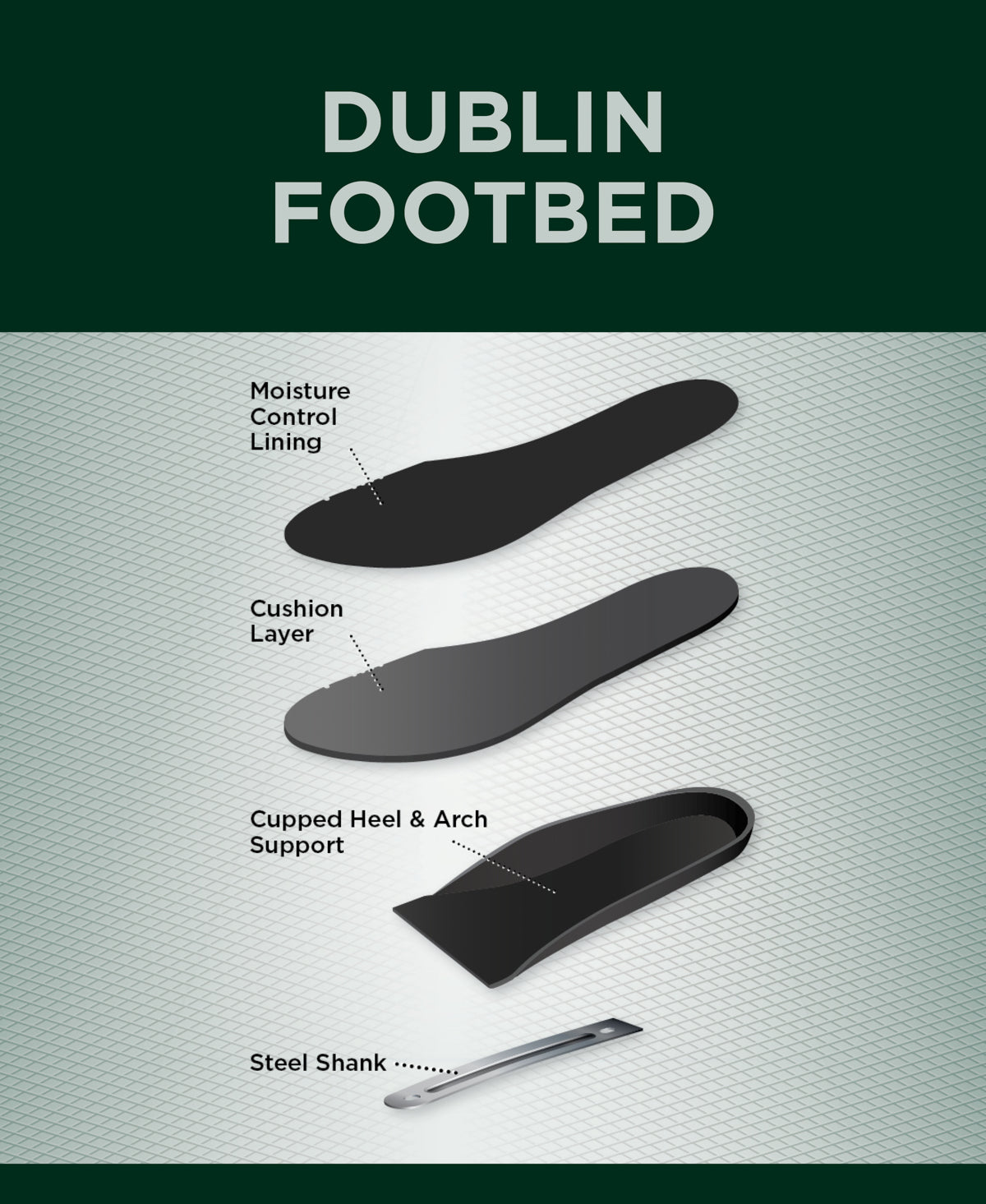 - Dublin footbed with EVA cradle offers comfort and moisture control.