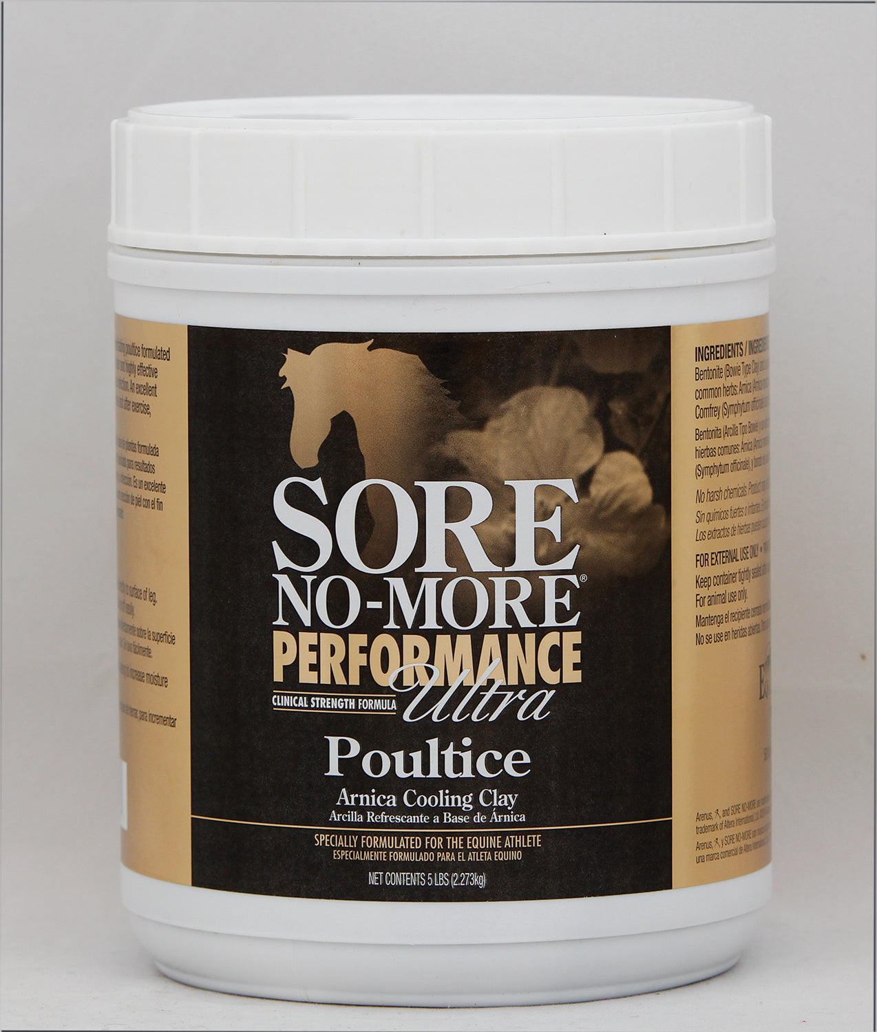 Sore No-More Performance Ultra Poultice can be applied daily and at regulated competitions. It can be used on its own or under wraps, paper or plastic, with no risk of burning, blistering or irritation.