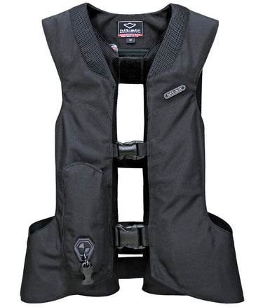 The H2 has the tailored style and fit of the original Hit Air Advantage Vest with additional inner padding in the back, hips, neck and ribcage area. It features an All-In-one Adjustable Bungee-Saddle Strap combination for ease of use. A harness-type airbag vest, it is worn close to the body and boasts a design that allows cooling airflow. A high-speed key ball mechanism activates the CO2 cartridge.