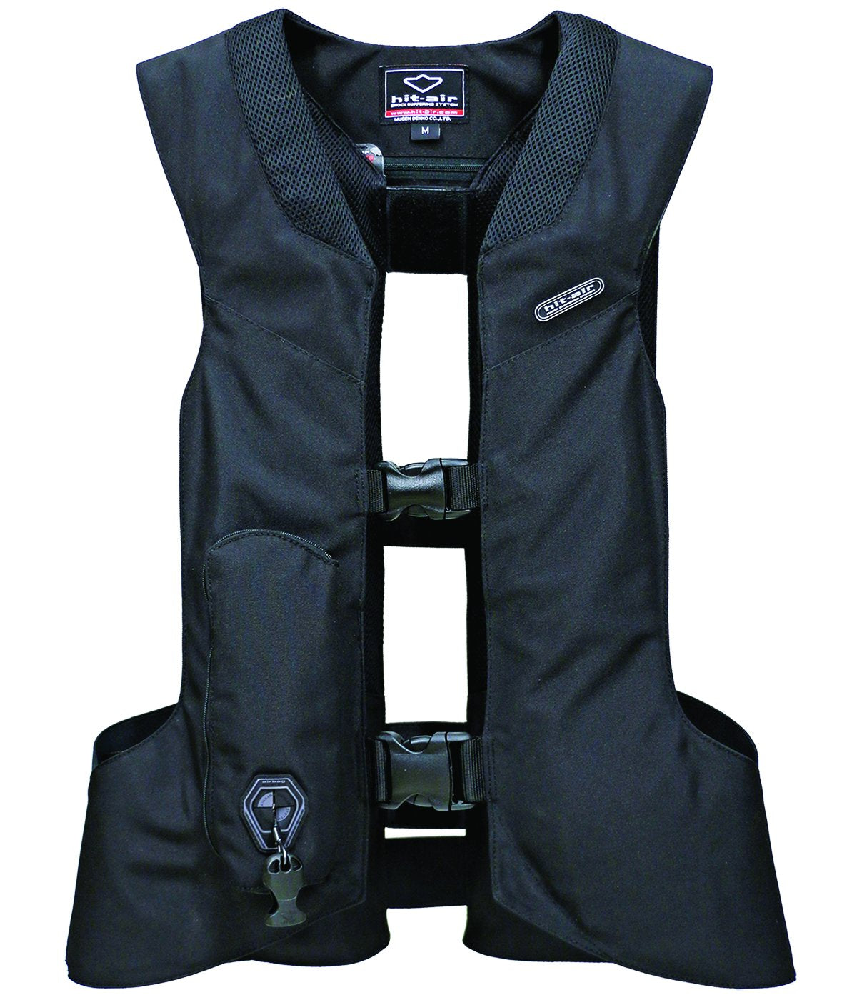 The H2 has the tailored style and fit of the original Hit Air Advantage Vest with additional inner padding in the back, hips, neck and ribcage area. It features an All-In-one Adjustable Bungee-Saddle Strap combination for ease of use. A harness-type airbag vest, it is worn close to the body and boasts a design that allows cooling airflow. A high-speed key ball mechanism activates the CO2 cartridge.