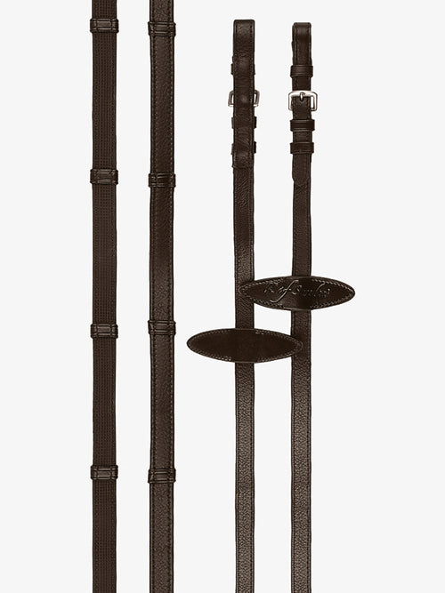 Soft and comfortable for both horse and rider, PS of Sweden Softy Supergrip Reins pair top-quality, vegetable-tanned English “softy” leather and supergrip rubber to provide superior grip. Leather hand stops offer additional hold.