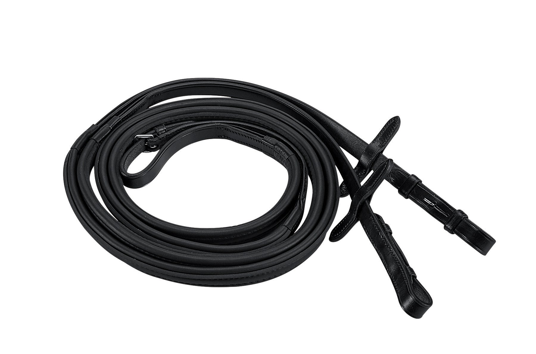 Covered in smooth ThinLine material, ThinLine® Dressage Reins conform to your grip while you’re riding and then return to their original state afterward. They have a traditional look suitable for competition and the durability to stand up to everyday use. These reins are have sewn-on stops and are available with either buckle ends or hook stud ends.