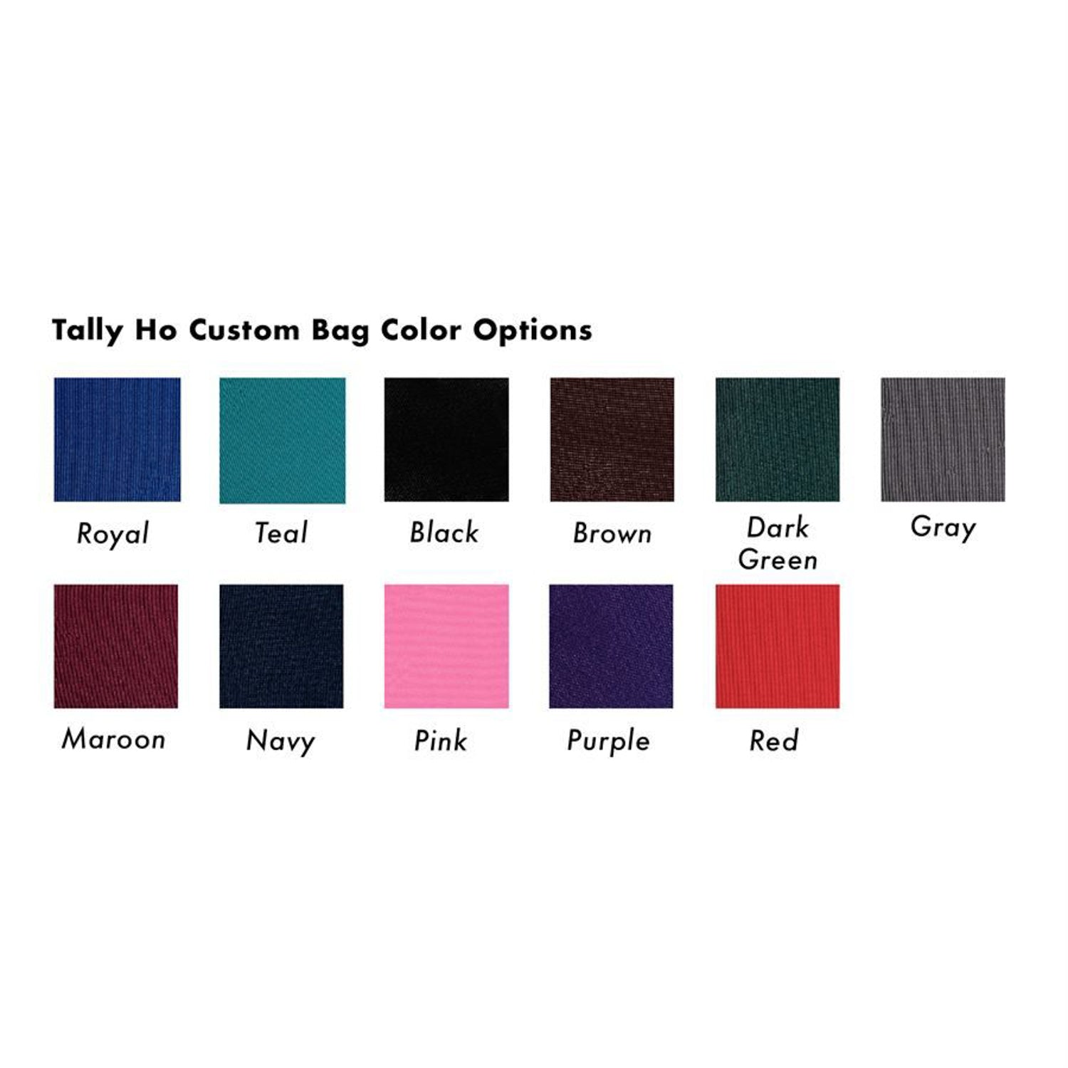 The Custom Unlined Bridle Bag from Tally Ho protects your bridle from dust and scratches. Made of durable nylon, it holds one bridle upright with an interior snap closure. Hangs anywhere with the loop on top. 26"L x 11"W. Choose your bag color and trim color. Allow 4-6 weeks for delivery.