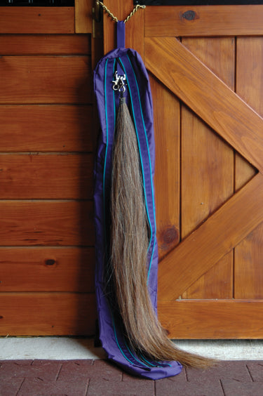 The Custom Double Tail Bag by Tally Ho protects up to two tail extensions during storage or travel. Interior lobster clips hold each tail in place and prevent tangling. A protective flap keeps stray hairs from getting caught in the zipper. Hanging loop on top. Choose the body color and trim color. Allow 4-6 weeks for delivery.