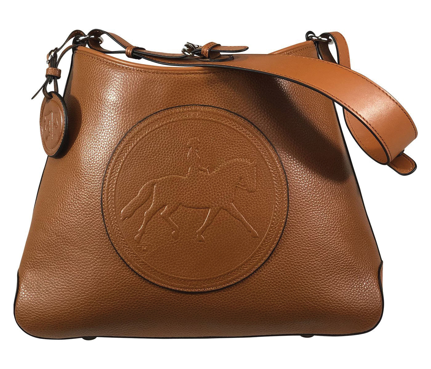 This stunning bag with adjustable shoulder strap keeps its shape over your shoulder. Available in 11 colors and four embossing options, this is the ultimate every day bag for horse lovers.