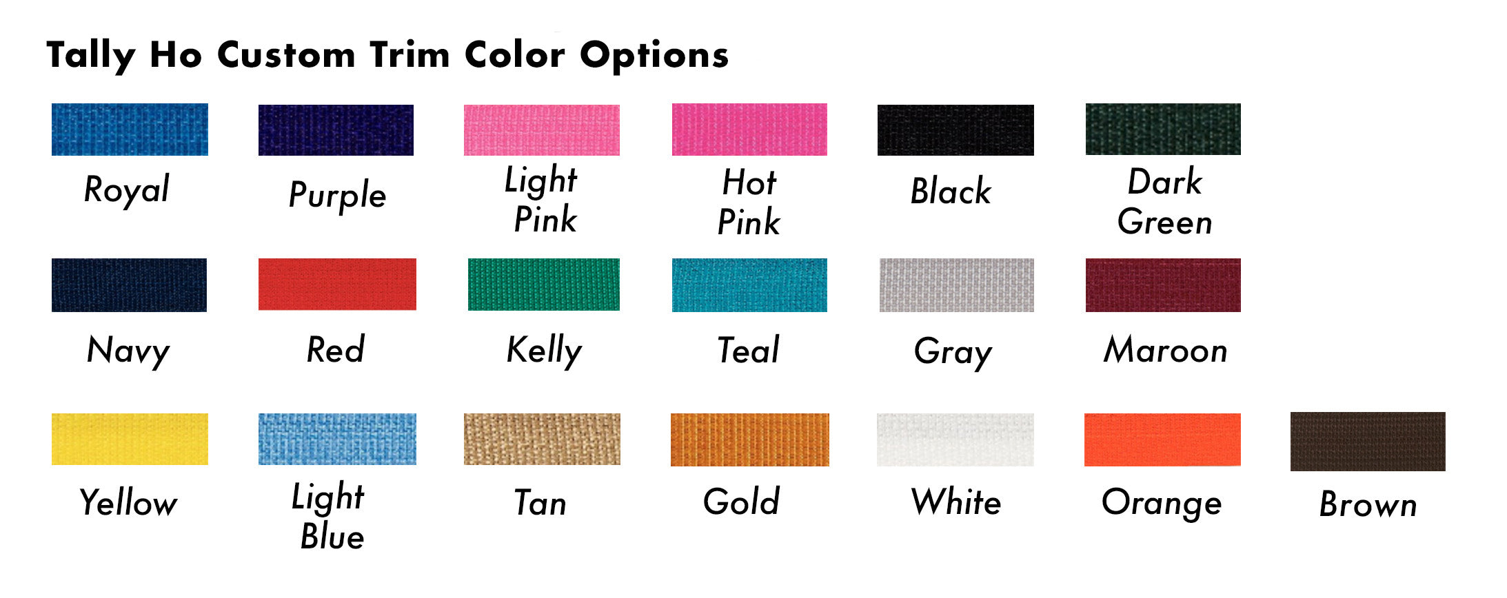 The Custom Unlined Coat Bag by Tally Ho is made of durable nylon to keep your show jackets clean and protected. Zippers closed along outer edge. A full width zippered front pocket is handy for storing your accessories. Measures 38"L x 24"W. Choose your bag color and trim color. Allow 4-6 weeks for delivery.
