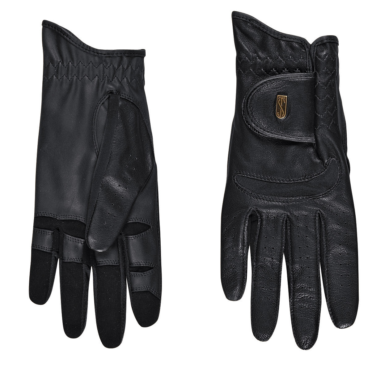 Tredstep™ Dressage Pro Gloves provide a close contact feel with Tredstep's patented Flexi Grip palm to help hold reins without bulk. Finest lambskin back with a TruTouch lightweight synthetic palm for grip. Extra finger reinforcement for use with two sets of reins. High cuff.