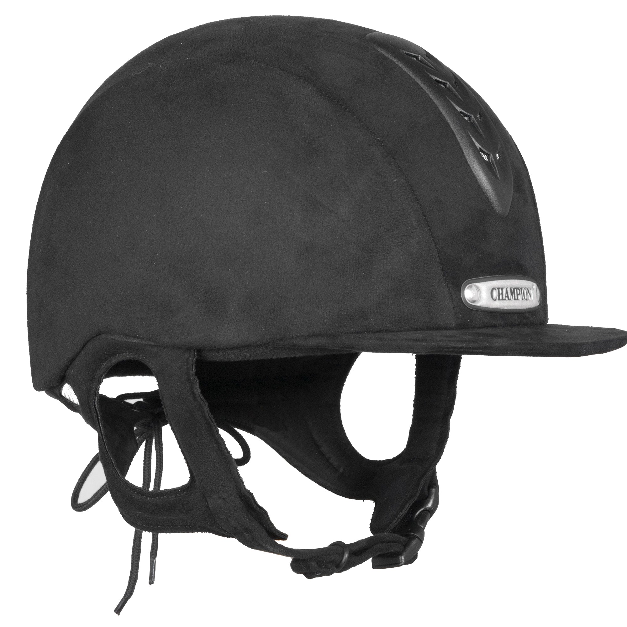 Champion® Adults’ X-Air Plus Helmet** for round heads has a durable, synthetic nubuck finish on a lightweight, injection-molded ABS shell. An integrated, highly ventilated airflow system keeps you cool while riding. A four-point padded synthetic suede harness offers supreme comfort and security. Handmade in Great Britain, this equestrian helmet features crown comfort padding in high-tech breathable microfiber.
