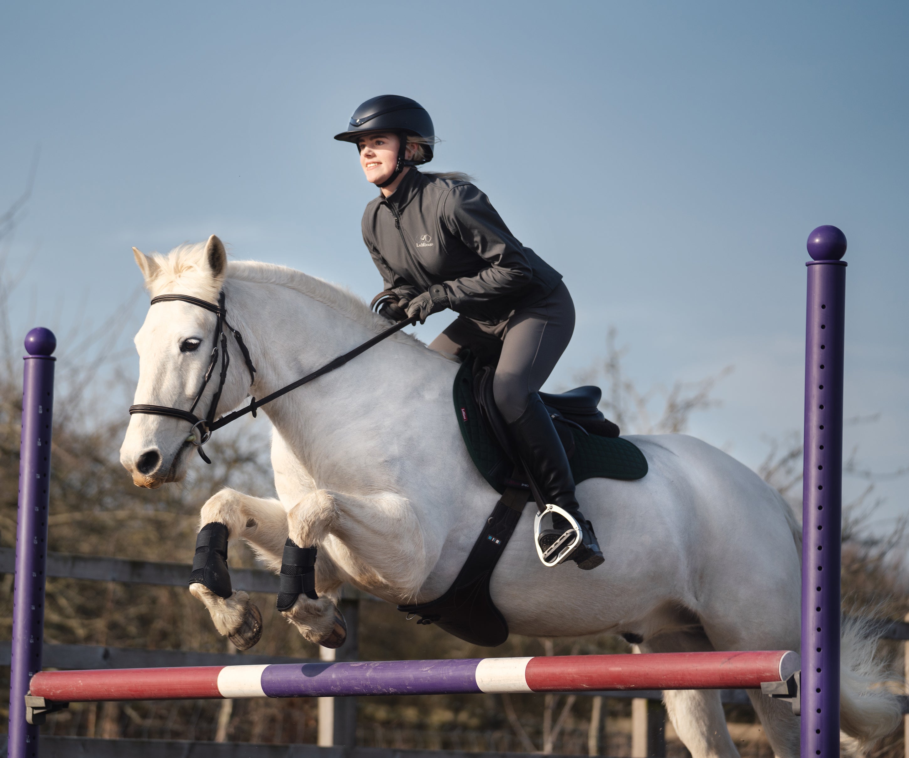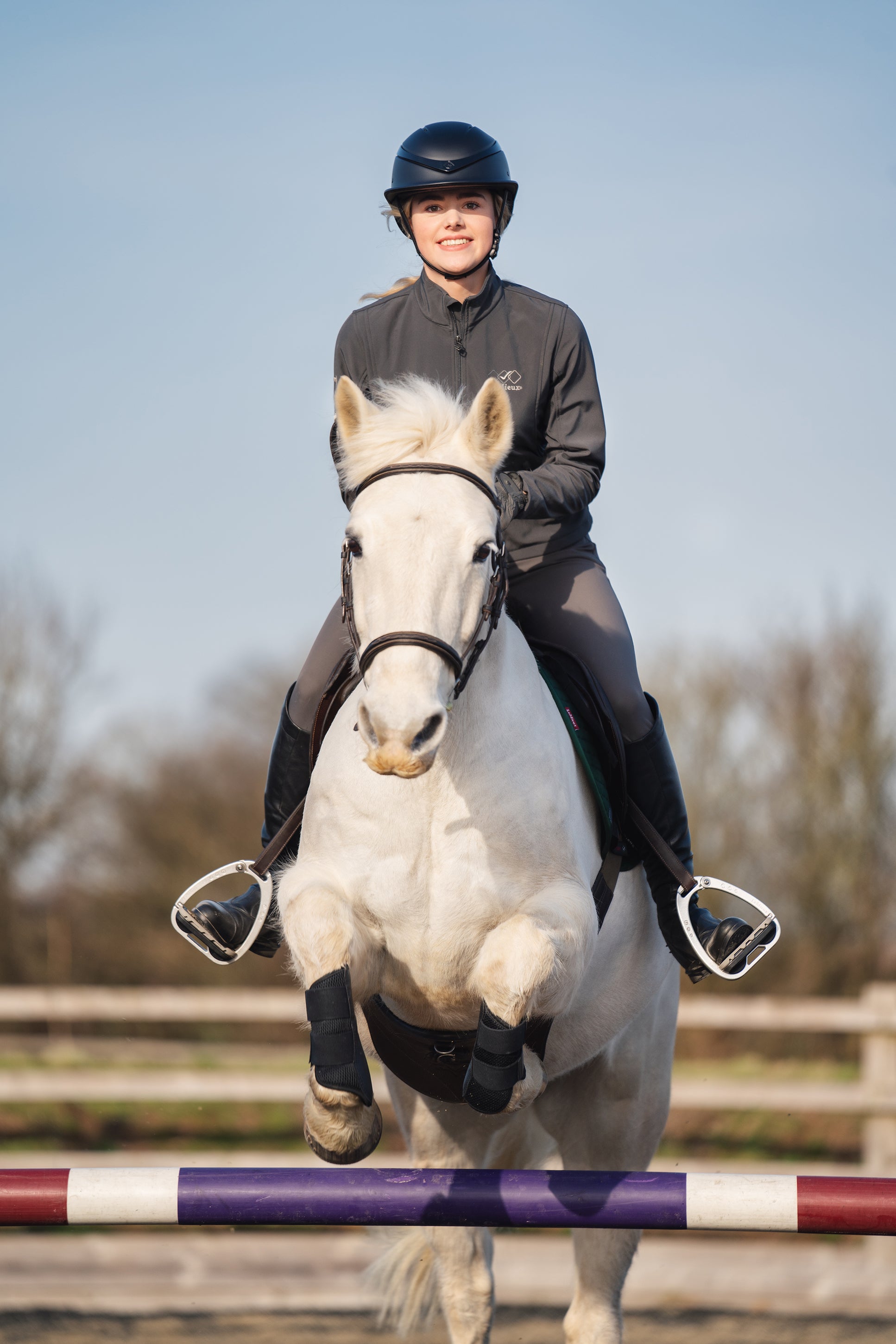 This riding helmet has a ventilated Flexzone peak and a removable, washable padded headband to keep the interior fresh. It is made with an ABS plastic outer shell, an EPS inner shell and a leather-look cover harness with back tie to ensure the perfect snugness. **SEI certified to ASTM F1163-23.