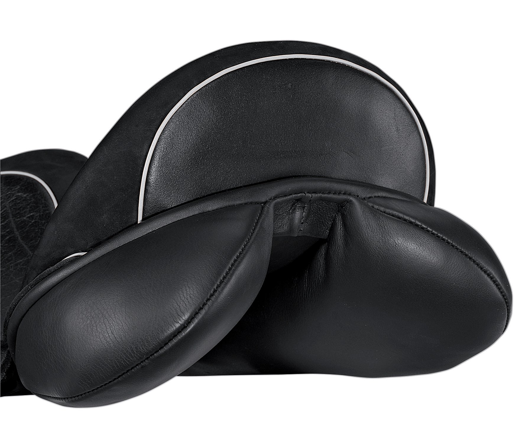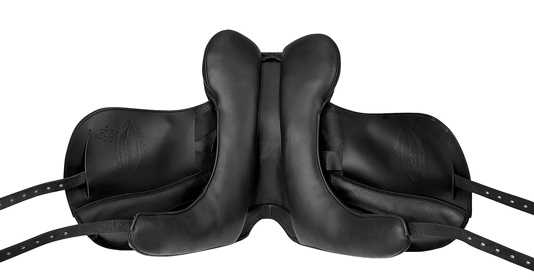 A wide gullet provides proper clearance of your horse’s spine, while an open pommel head is perfect for both high-withered and wide, large-shouldered horses. Panels are flocked with 100% natural imported wool that can be adjusted by a professional saddle fitter. Arrives with a saddle cover.