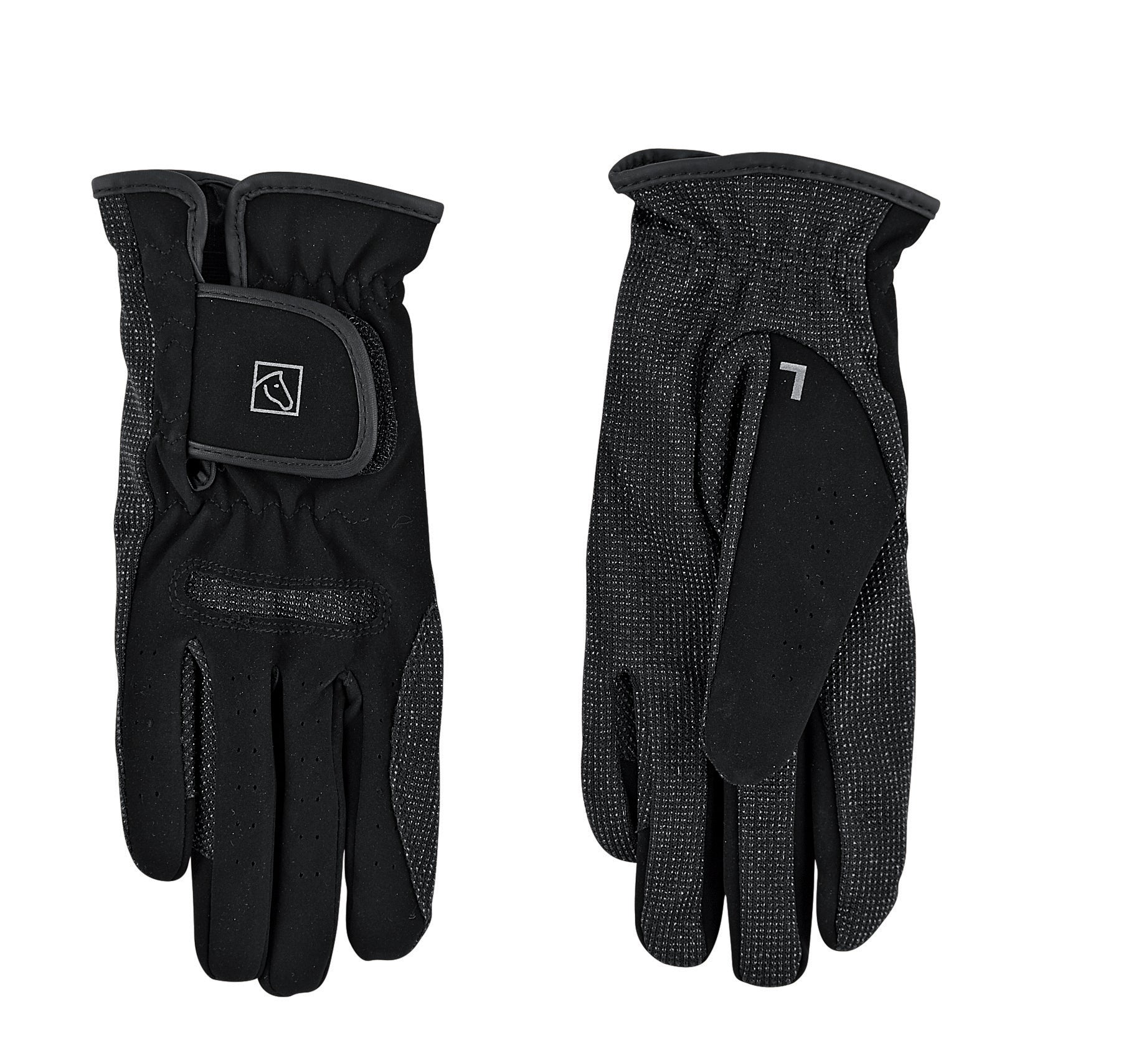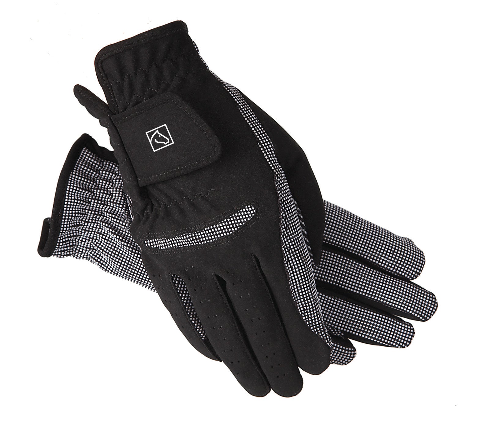 The SSG® Schooler Glove offers good grip with pimpled rubber on the palm and rein contact areas. An articulated area over the knuckle is elasticized for comfort. Elastic wrist with hook-and-loop closure. An "L" and "R" on base of left and right thumbs ensure easy identification. An economical, durable and comfortable riding glove!
