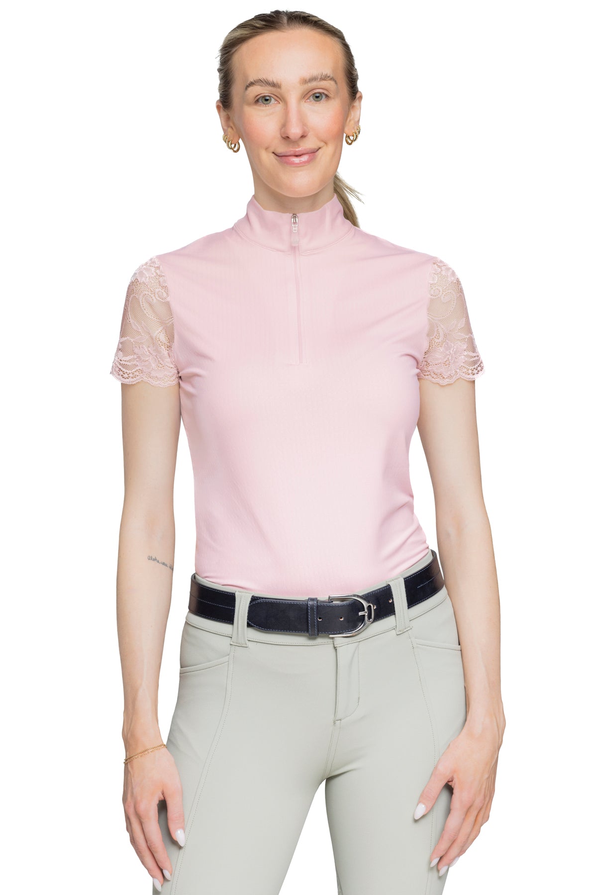 The Kastel Denmark Willow Short Sleeve Shirt pairs a solid-color bodice and feminine, contemporary stretch-lace sleeves. Soft, four-way stretch fabric in the body is rated UPF 30 and offers antibacterial odor control.