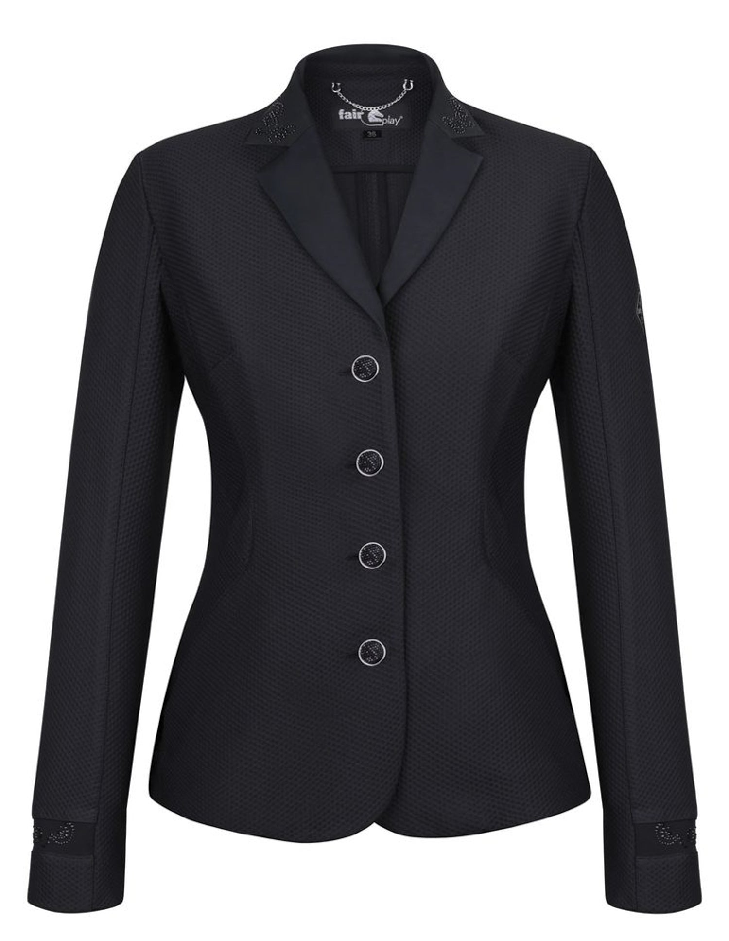 Fair Play® Taylor Comfimesh™ Chic Show Coat is a modern jacket made of extremely lightweight, breathable and elastic mesh fabric—ideal in hot temperatures. In a special weave that resists abrasions, Comfimesh fabric provides great breathability and quick-dry properties.
