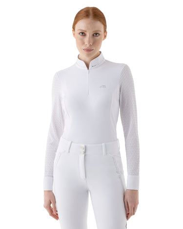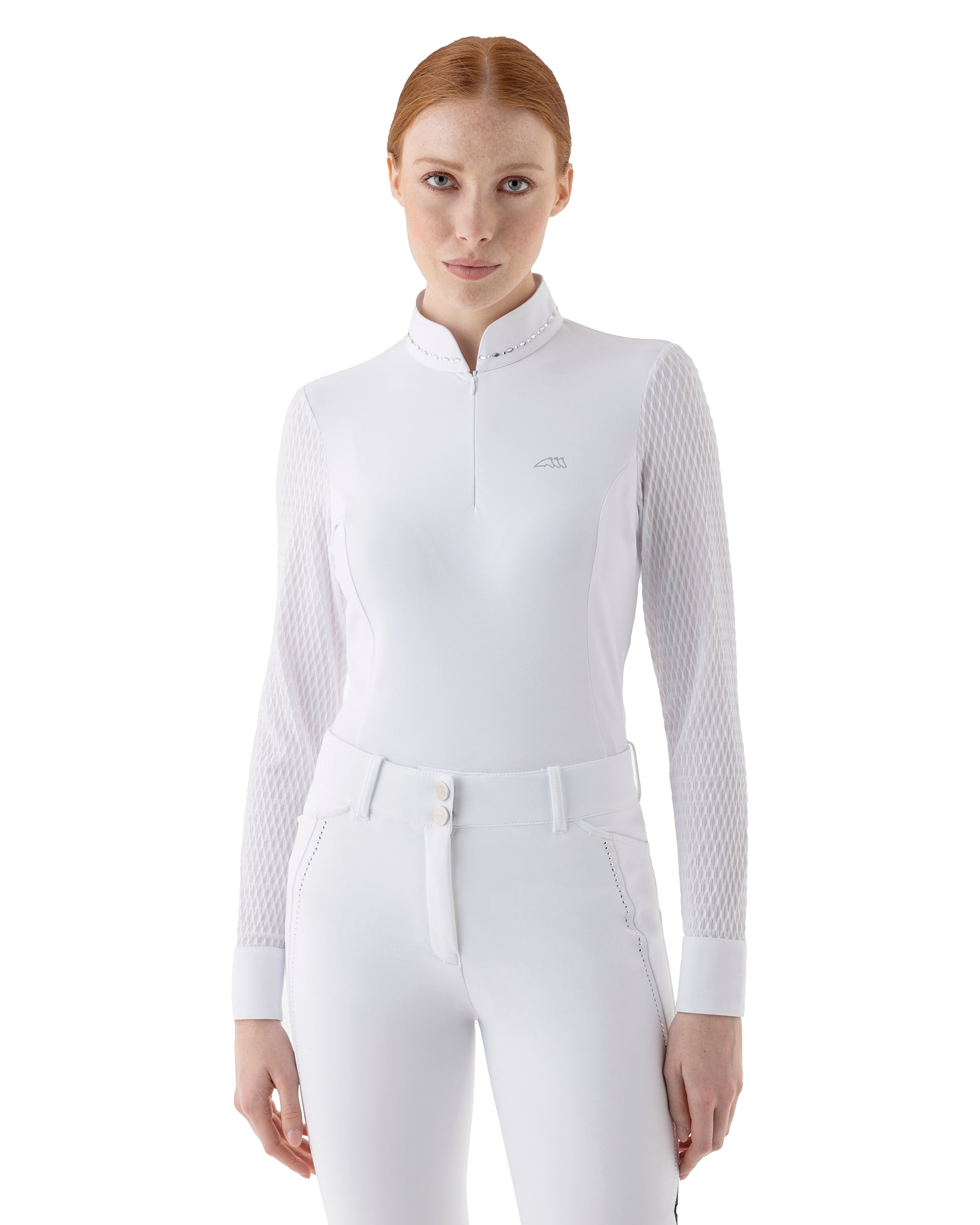 The Equiline Golig Long Sleeve Competition Shirt is fashioned from breathable, stretchy fabric with quick-dry, diamond-mesh long sleeves. A concealed front zipper keeps the look streamlined.