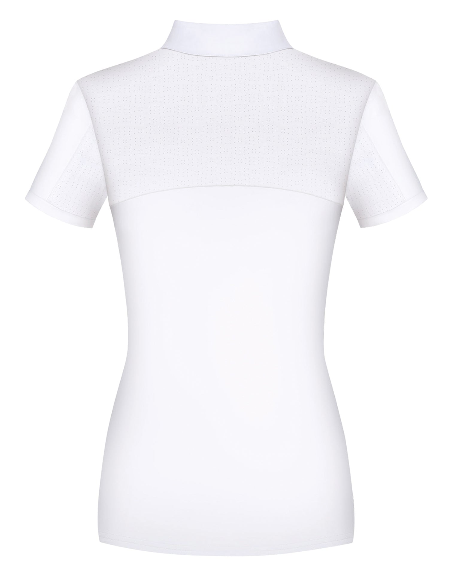 The Fair Play® Ingrid Short Sleeve Show Shirt is elegant and feminine in elastic and breathable recycled fabric. It provides enhanced airflow and protection from UV rays. Perforated inserts on the back and under the sleeves let air circulate.