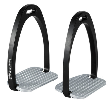 Stübben STEELtec Maxi Grip Stirrups in lightweight aluminum have wide, ergonomically shaped, grated footbeds to provide grip and added security. Branch is also slightly angled to help the rider keep foot and leg in the ideal position. Black. Pair.
