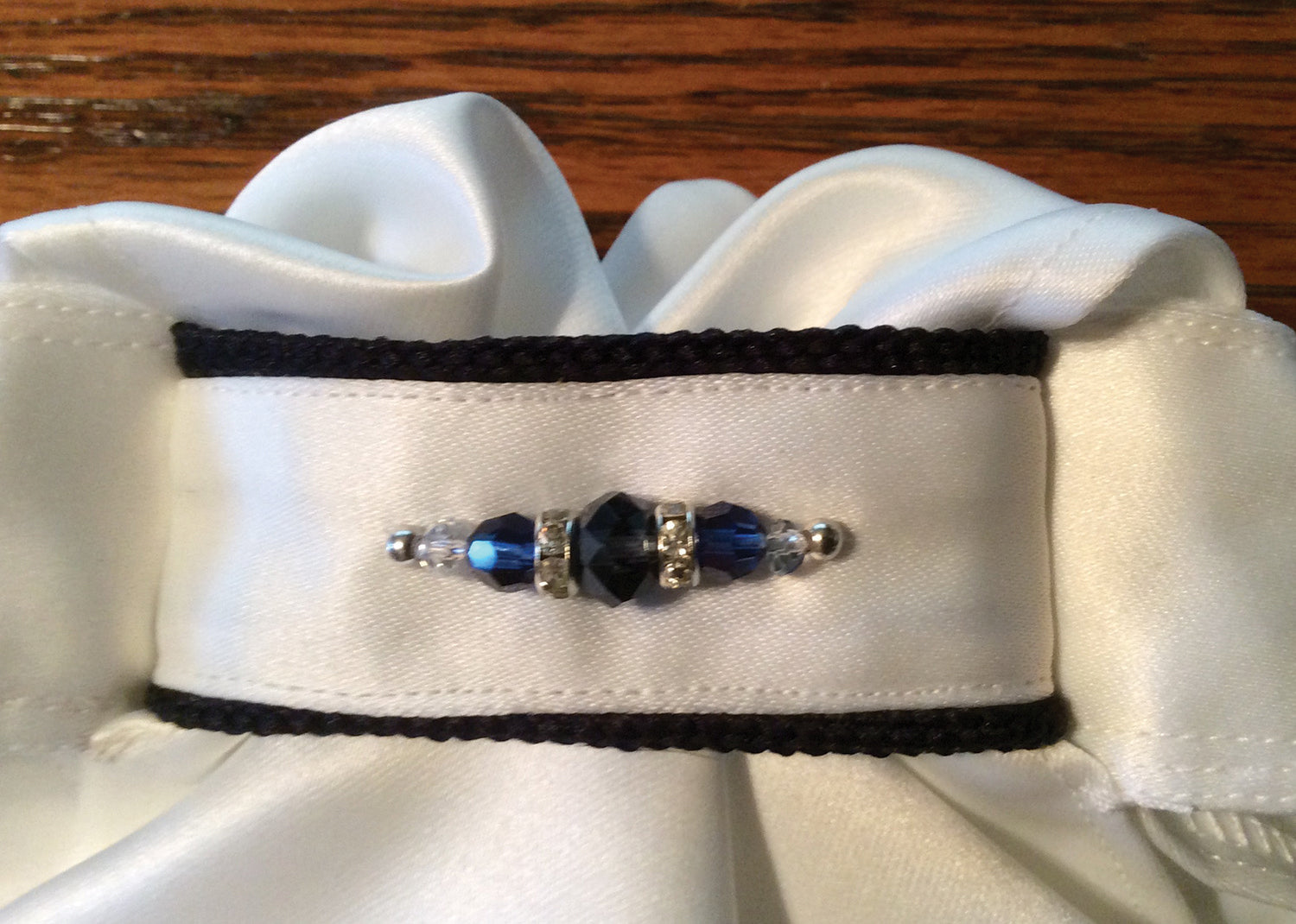 Beautifully sewn by hand, an All Tied Up Stock Tie adds refined and fashionable style to your dressage ensemble. Exquisite, washable fabric is decorated with beads that are securely sewn. No additional pinning is required for that touch of sophisticated sparkle. A sturdy hook-and-loop rear closure lets this dressage stock tie go on easily and stay put while you ride.