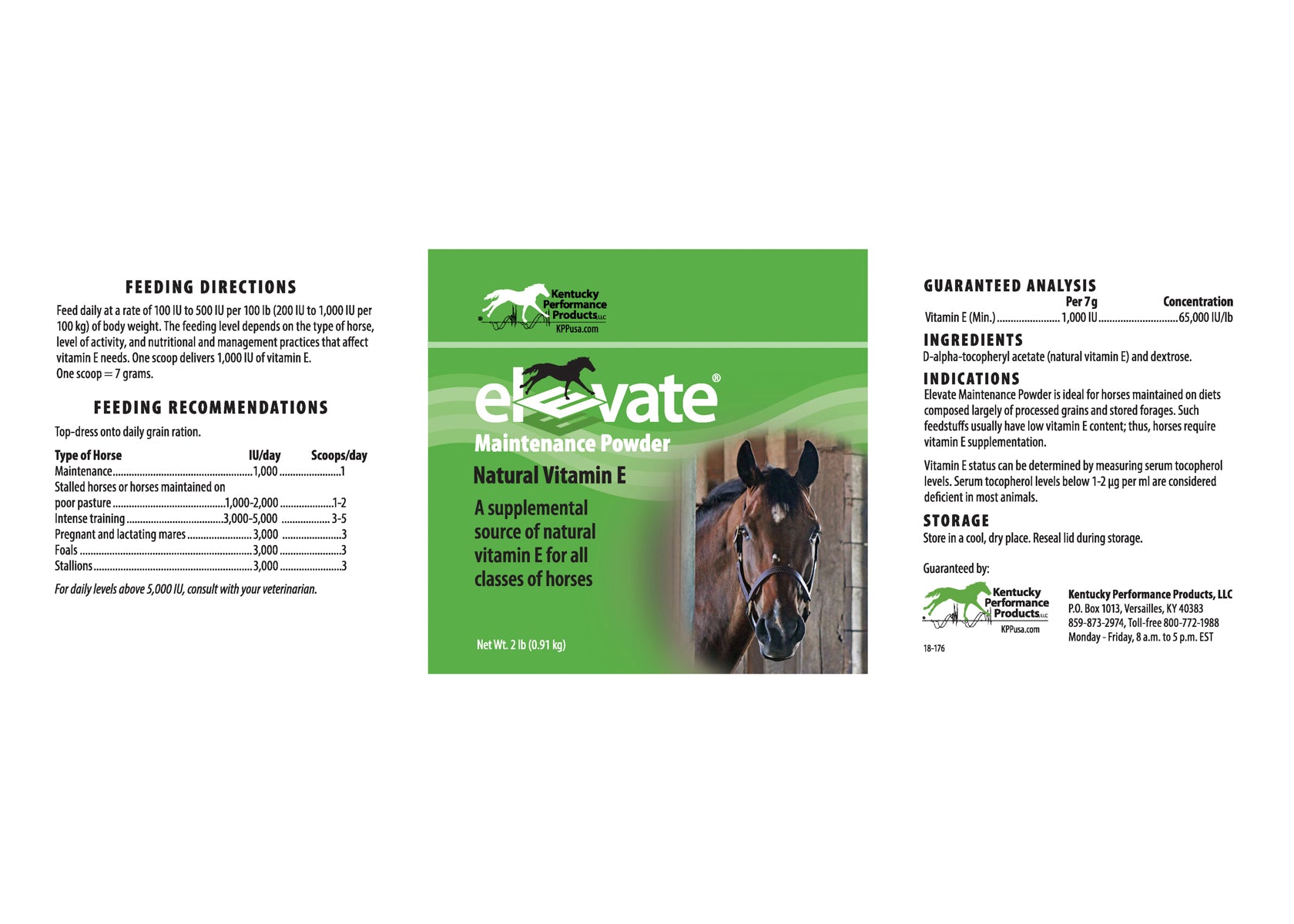 Elevate® from Kentucky Performance Products provides horses with a highly absorbable and readily available, natural source of vitamin E required for proper muscle and nerve function as well as immune system support. Equine athletes, breeding stock and horses with certain muscular disorders may require supplemental vitamin E. Hardworking horses that lack adequate stores of vitamin E may experience muscle soreness or stiffness during exercise or suffer prolonged recovery times after strenuous work. An economical way to meet your horse’s essential vitamin E needs, this supplement contains only vitamin E; dosing can be adjusted without concern over causing an imbalance in another vitamin or nutrient. It provides 1,000 IU per scoop, included. 2 lb. (130-day supply.)