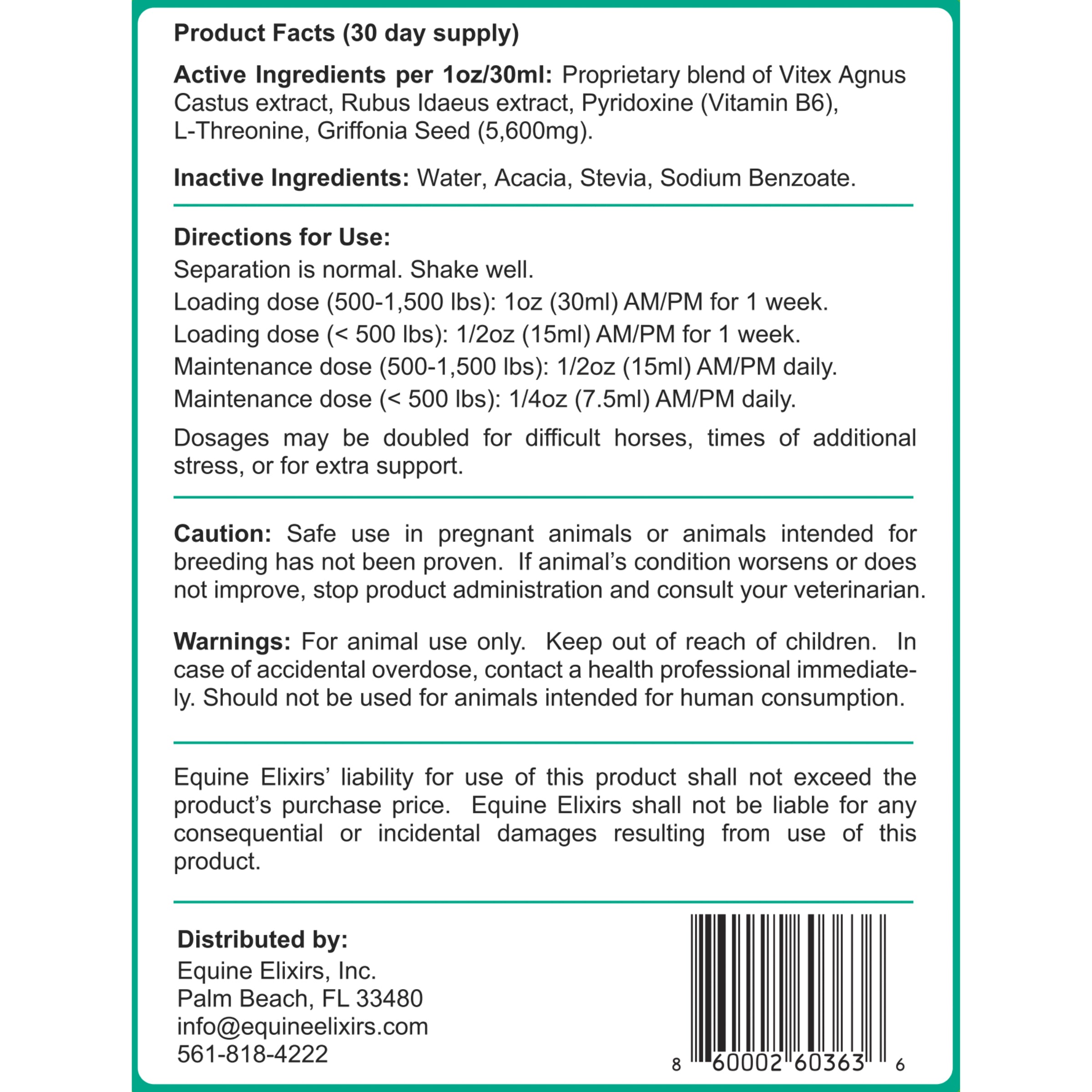 Equine Elixir Positude® all-natural hormone support is made from highly concentrated extracts that are designed to act upon the pituitary gland to maintain even hormone levels in mares, geldings and stallions. Mimicking the effects of progesterone therapy, Positude is easy to administer. Its daily delivery system eliminates peaks and troughs of hormonal fluctuations.