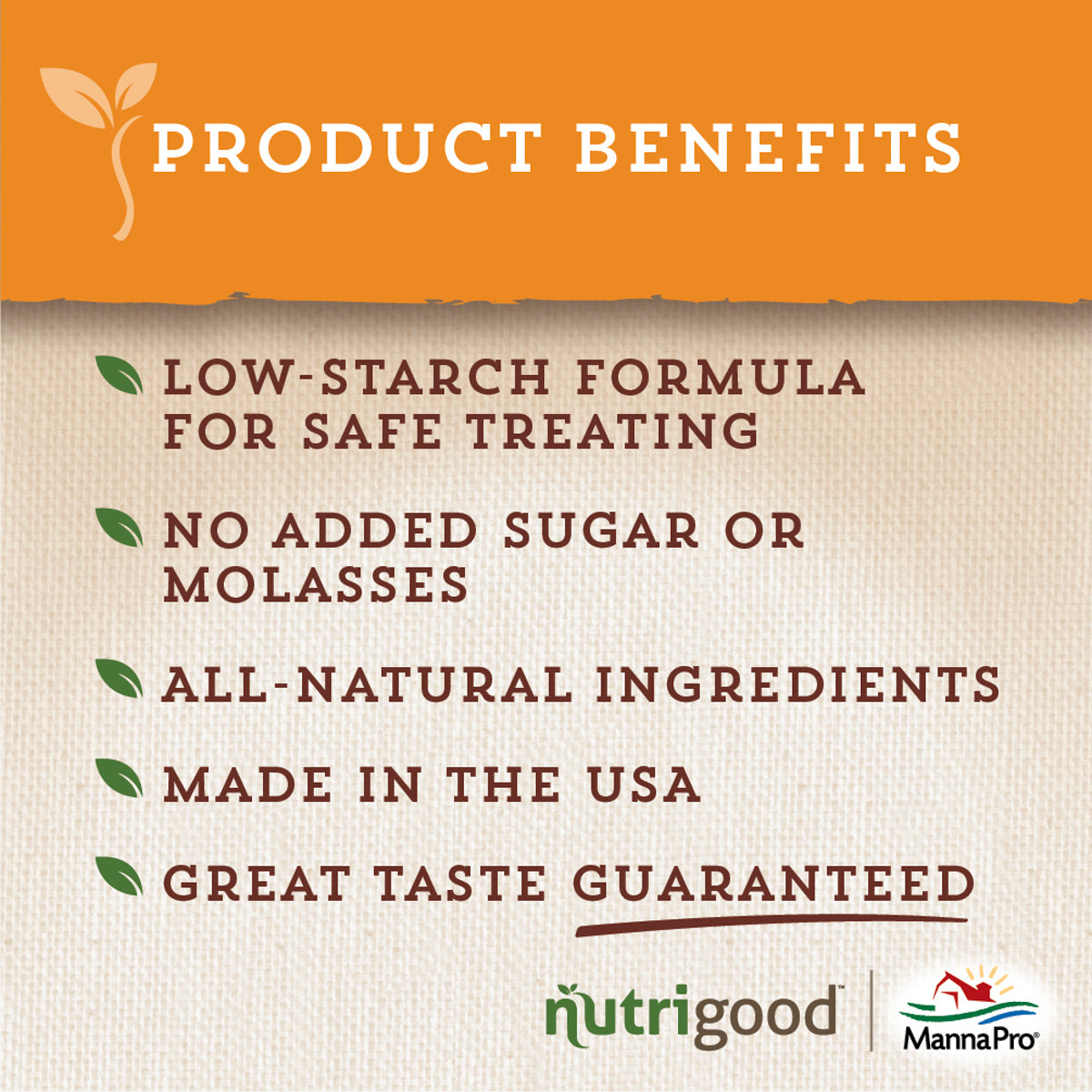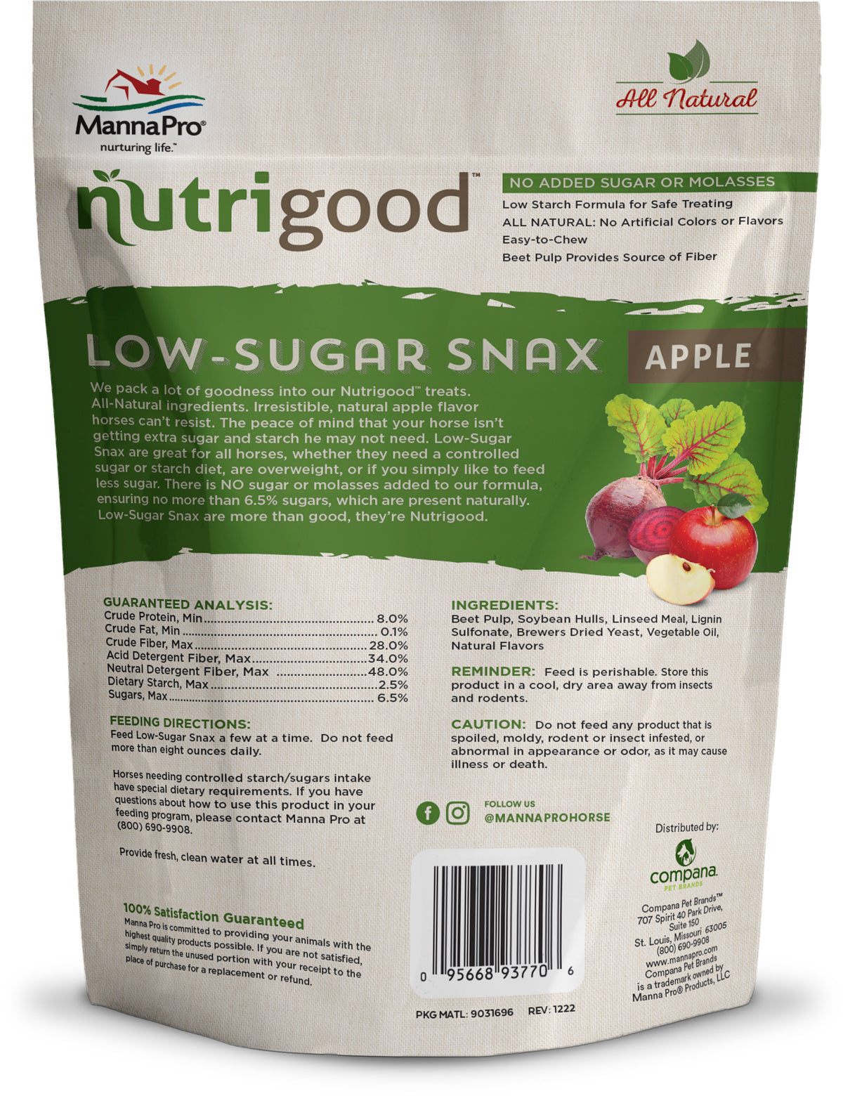 Manna Pro® NutriGood™ Low Sugar Snax are ideal for overweight horses, horses with metabolic challenges and for horse owners who want to feed less sugar in a treat.