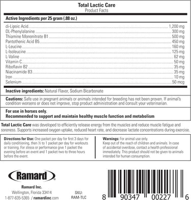 Ramard® Total Lactic Care muscle recovery and energy conversion powder with branch chain amino acids (BCAAs) provides critical support to the muscles of performance horses. With these powerful BCAAs, it helps prevent muscle fatigue and cramping or tying up.