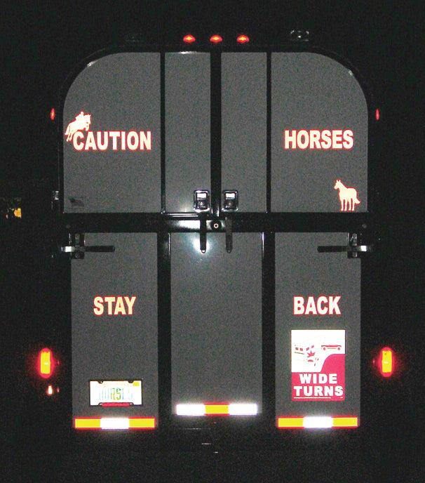Help other drivers spot your horse trailer with the Caution Horses Sign. Engineer grade reflective vinyl of the same quality used on public service vehicles helps increase your visibility by day or by night. Durable, easy-to-see letters won’t wear off and are easy to apply.