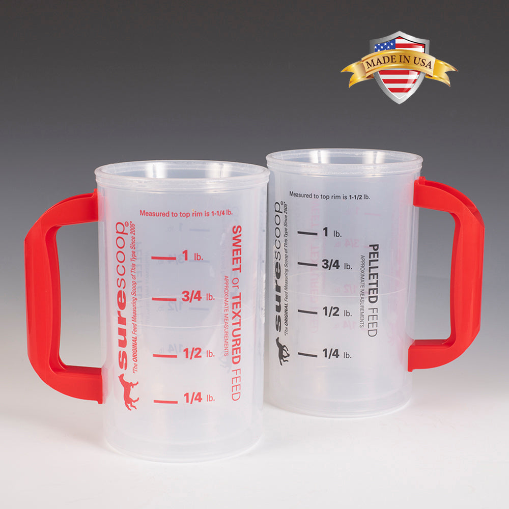 Get accurate measuring of both sweet and pelleted horse feeds. This feed scoop is clearly marked with quarter, half and one-pound increments that are easy to read.