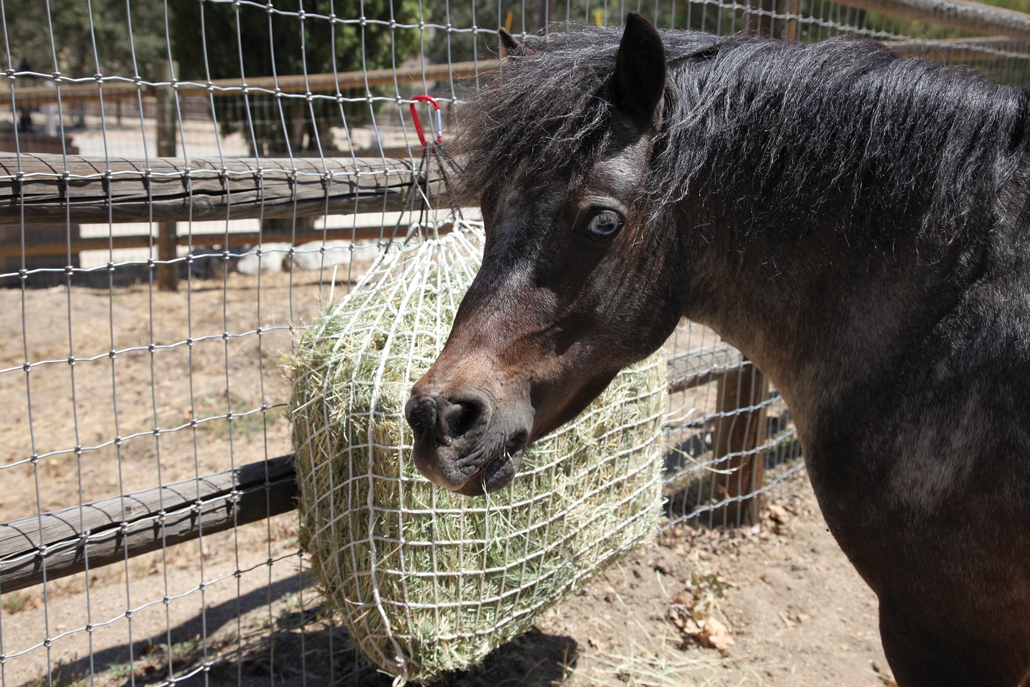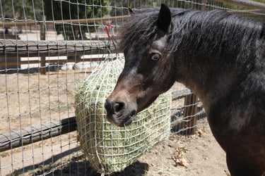 Designed and manufactured in the USA, the Freedom Feeder® Mini/Trailer Size with breakaway connection makes your horse’s hay last a long time as he feeds through the 1" openings. This original slow feed net feeding system simulates natural foraging and optimizes your horse’s digestion. It’s made from soft, yet extremely durable, woven knotless nylon. This easy to fill feeder also reduces the amount of waste and saves you money as almost no hay is lost to trampling. Measures 2 1/2' x 2' and holds 2 flakes. This bag should be hung high if your horse wears shoes or is playful. Includes draw cord closure. Spares kit includes repair cord and 3" safety clip.