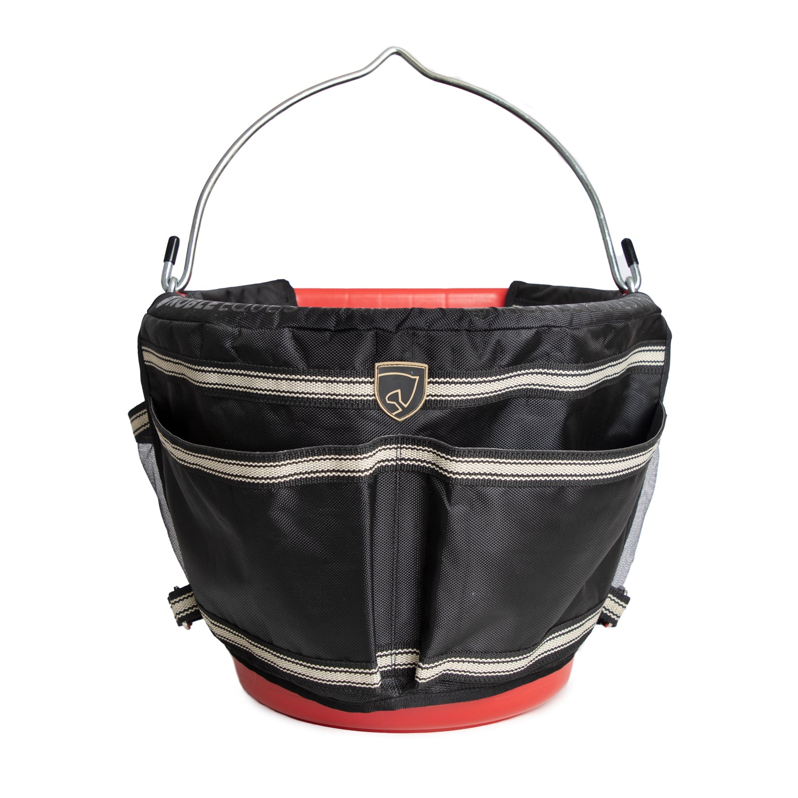 The Noble Equestrian™ Barn Bucket Bag turns any of your 20-quart buckets into a multi-pocket organizer. Made of a durable 1680 denier poly textile, the bucket fits over the rim of a bucket, secures with hook-and-loop fasteners and allows the use of both bucket handle and bucket interior.