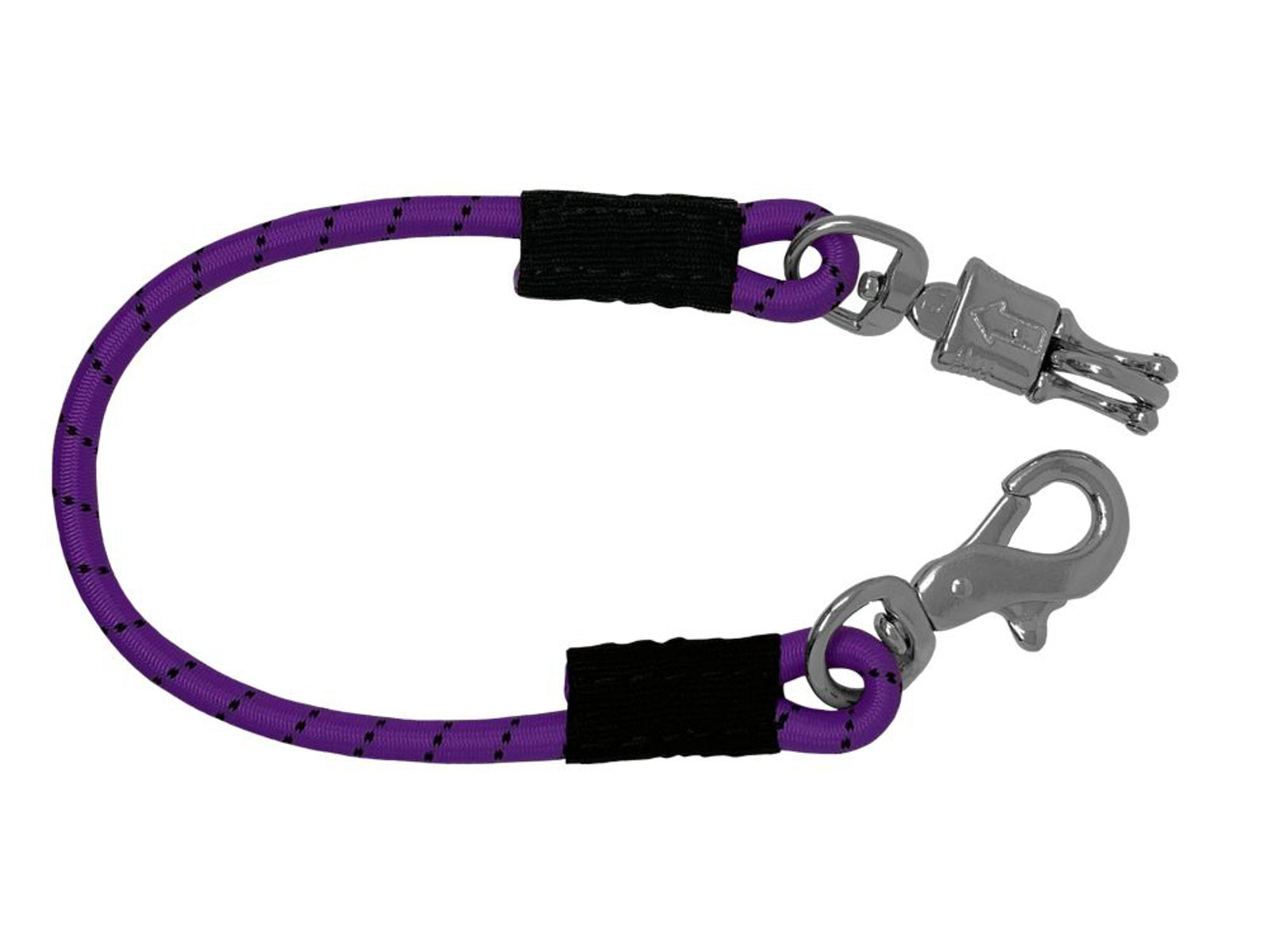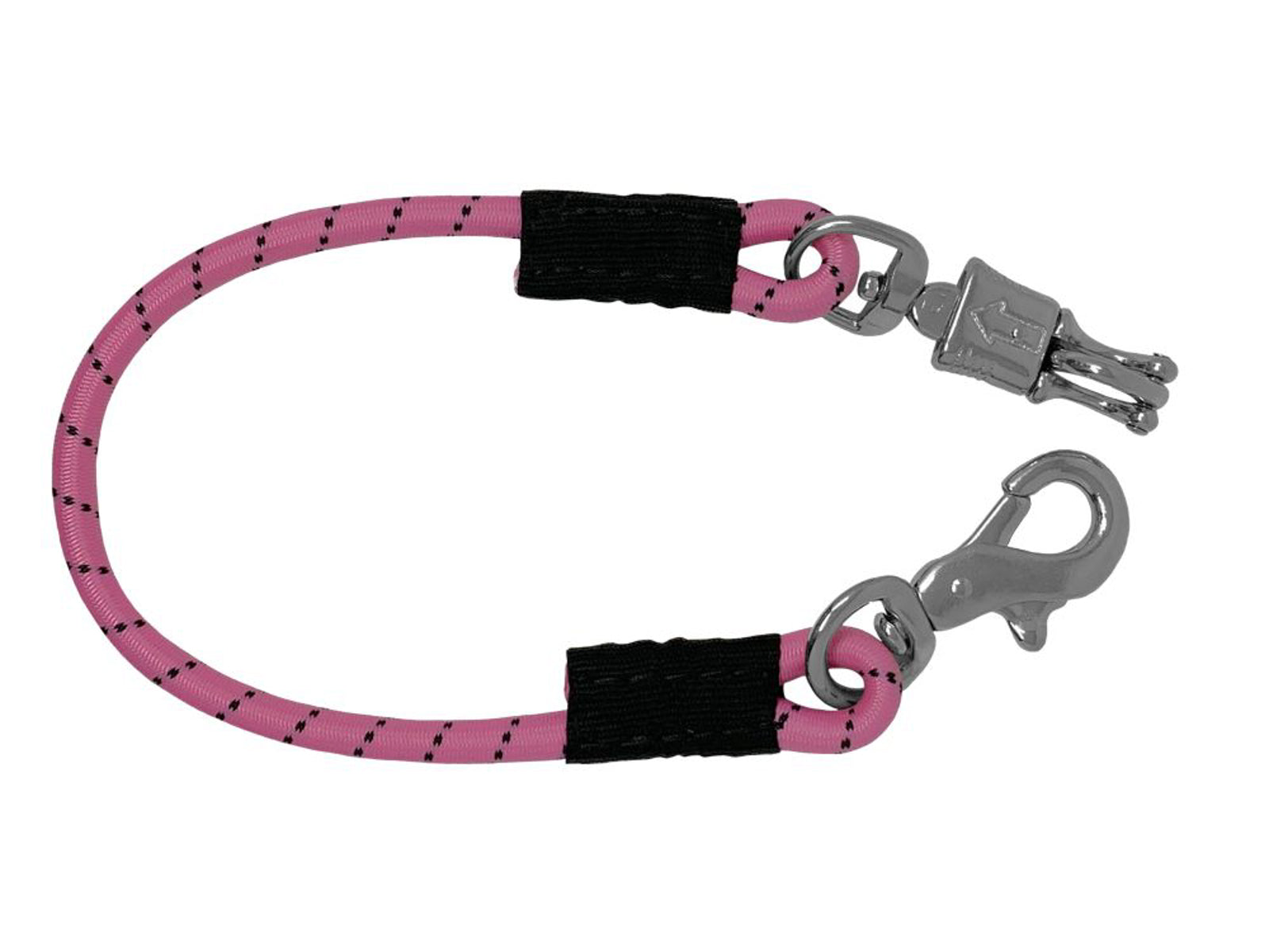 Showman® Bungee Trailer Tie has a quick-release panic snap on one end and a heavy-duty bull snap on the other. Made with strong nylon elasticized bungee rope to help absorb shock. 29" long. Each.
