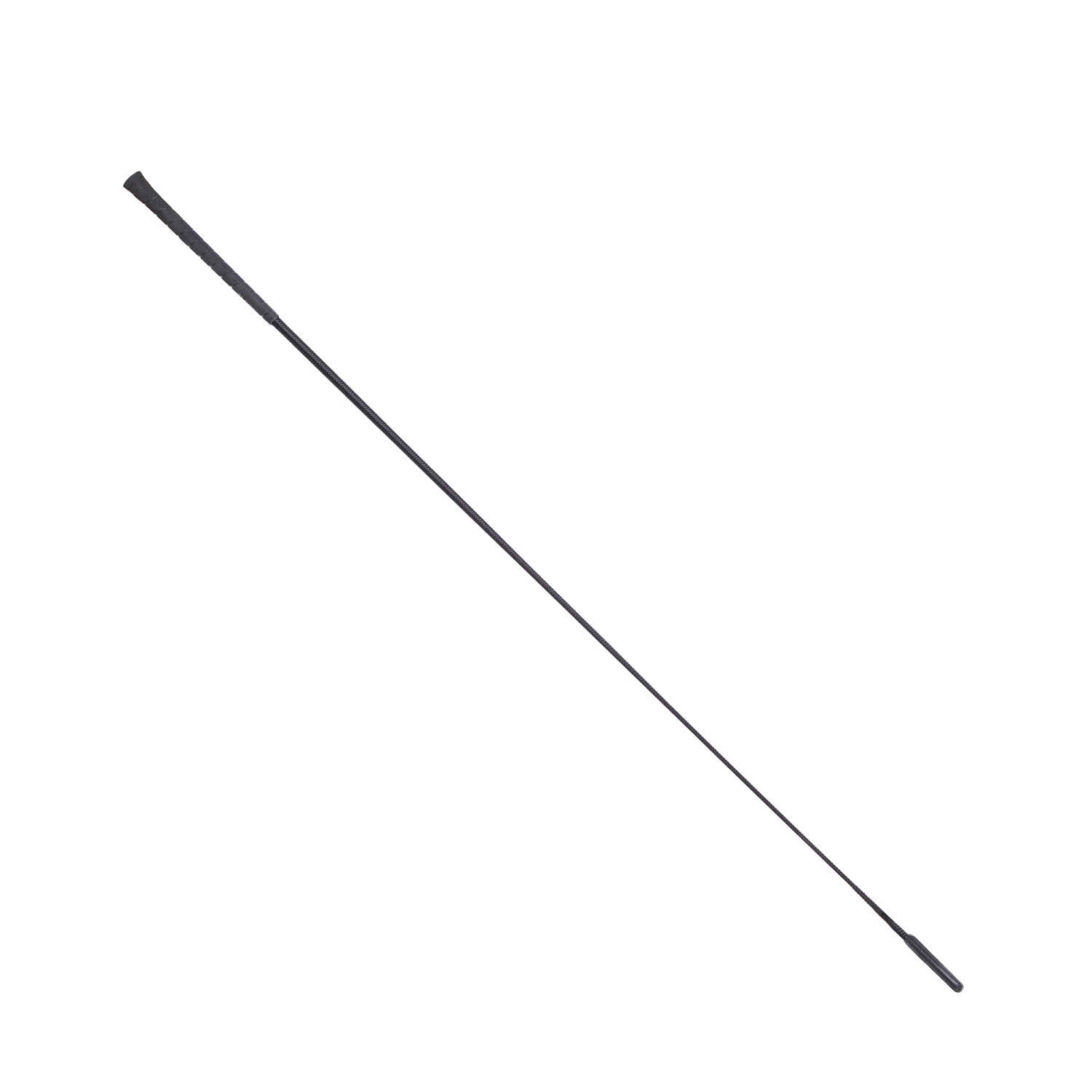 The Fleck® Dressage Whip with Leather Flapper is well-balanced and lightweight. In classic black, this whip features a soft, solid rubber handle and woven nylon-covered shaft with a solid fiberglass core. The shaft tapers to an oblong leather flapper instead of a lash.