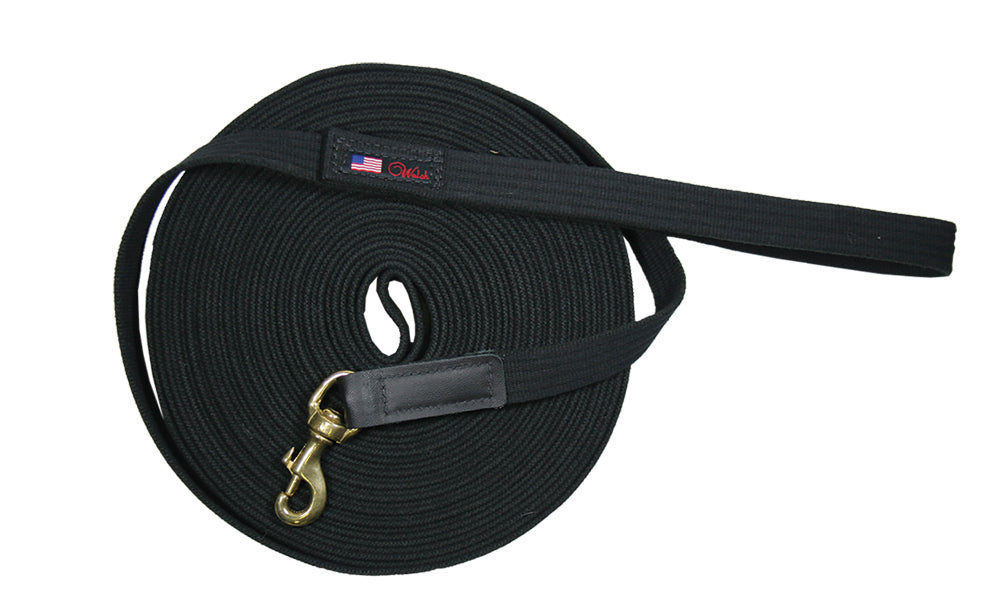 The Walsh™ Lunge Line can handle the rigors of daily training. Heavy-duty 1" wide cotton web with reinforced end, solid brass swivel snap and hand loop. 30' long.