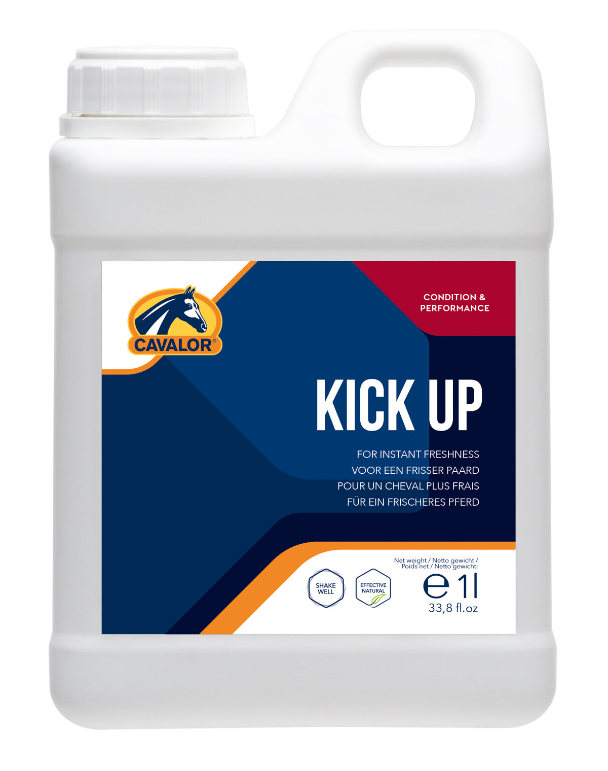 Cavalor® Kick Up is a liquid dietary supplement designed to lend vitality and energy to phlegmatic horses to promote a performance boost.