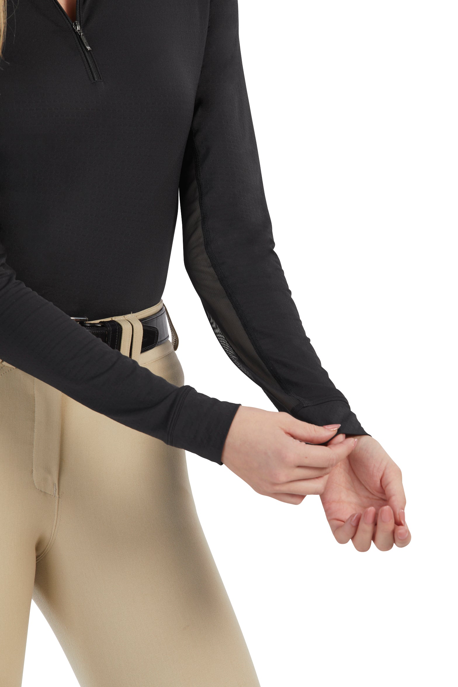 Quick-drying and exceptionally breathable, the CoolBlast Long Sleeve Shirt boasts a flattering feminine fit, athletic quarter zip placket and plenty of stretch for your freedom of motion. Mesh panels under the arms also provide airflow.