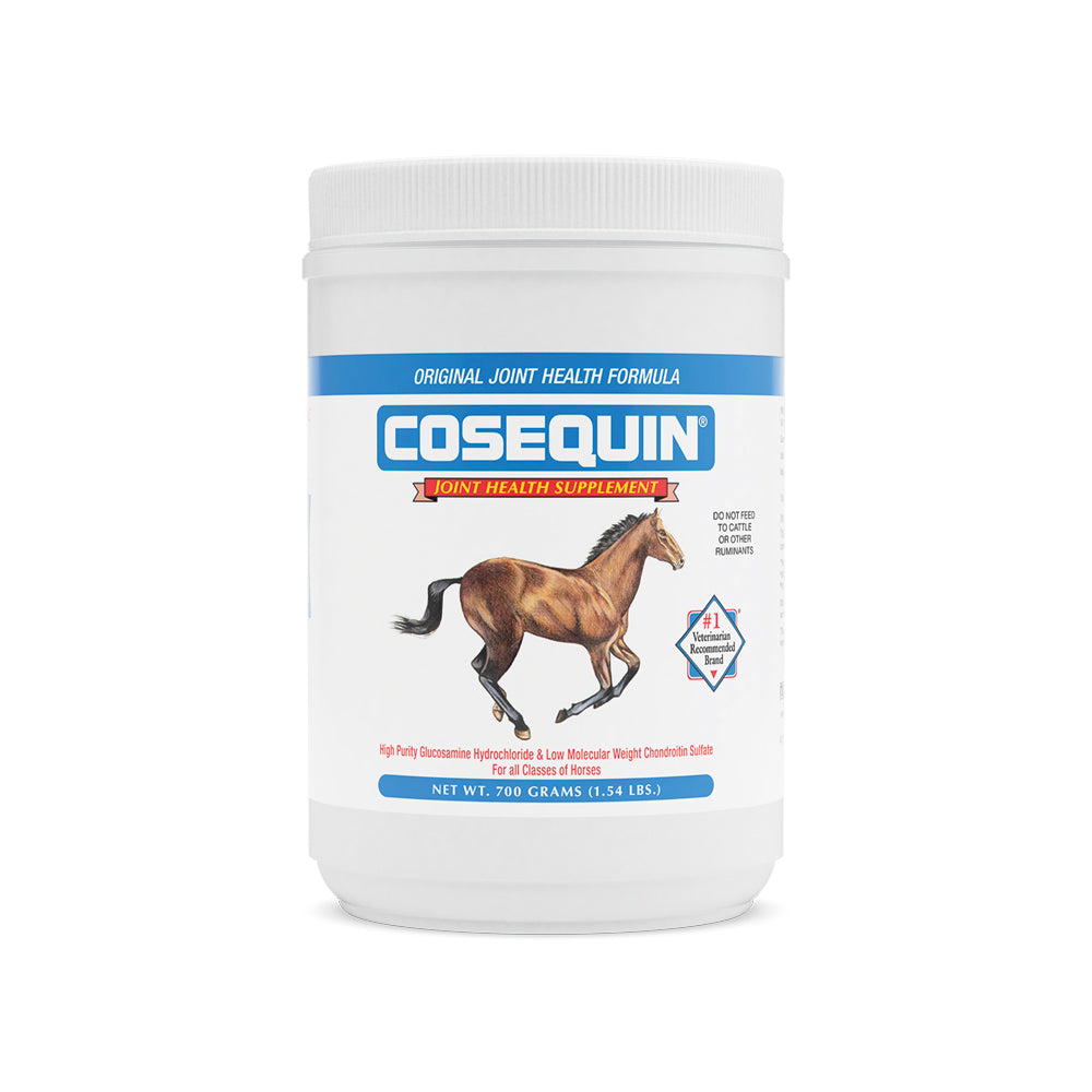 This easy-to-feed daily supplement helps protect against damage to articular cartilage that occurs in horses of any age and discipline when undergoing the stress of everyday riding, training and competition. This damage can affect joint function and the overall performance of the equine athlete. Cosequin helps to maintain the structure of joint cartilage while inhibiting damaging enzymes that break down cartilage.