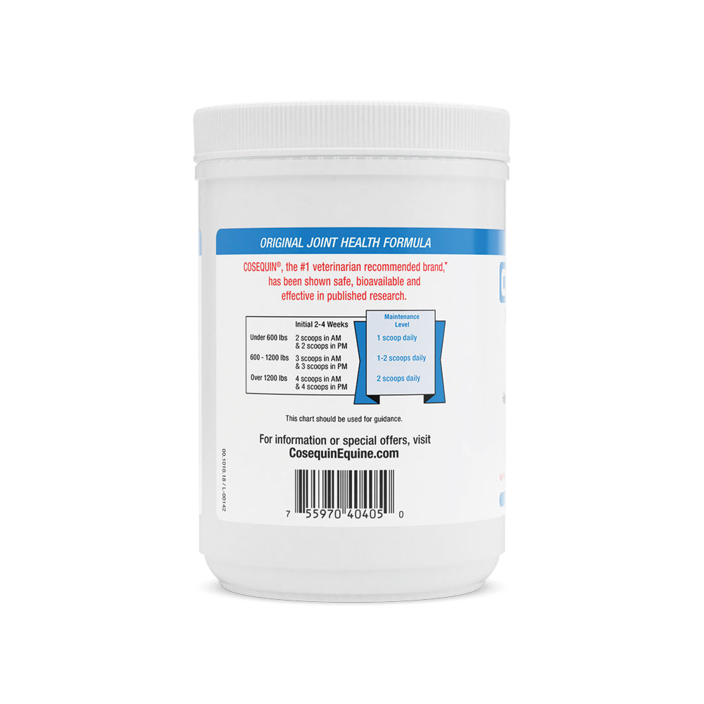 Cosequin® Original Powder by Nutramax® Laboratories is an oral joint health supplement for horses and ponies. Formulated using exclusive trademarked ingredients, FCHG49® Glucosamine and TRH122® Chondroitin Sulfate plus manganese ascorbate, this original Coseqin powder has been proven to be bioavailable and effective in supporting joint health.