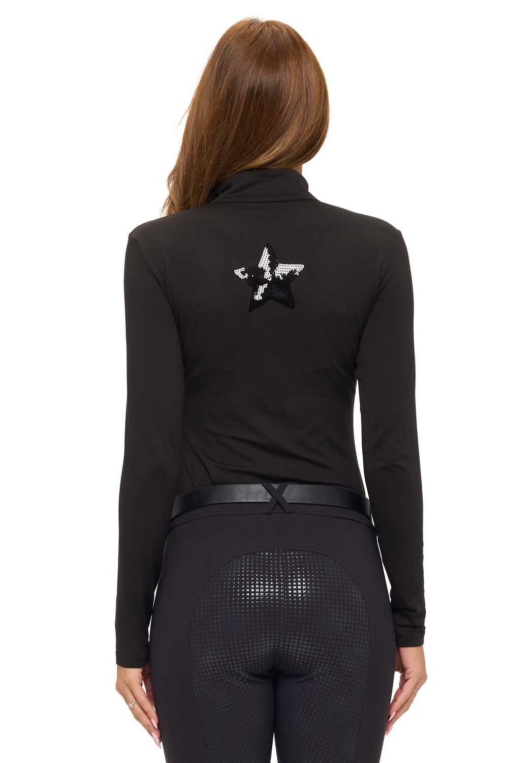 Before, during, or after your training session, the Dancing Equestrian Ladies’ "Ride" Long-Sleeve Base Layer Shirt has you covered. The ultra-soft base layer is not only fashion-forward, but designed to provide a flattering fit and support. Brushed breathable fabric provides comfort in all seasons and the quarter-zip with branded metal pull adds temperature regulation.