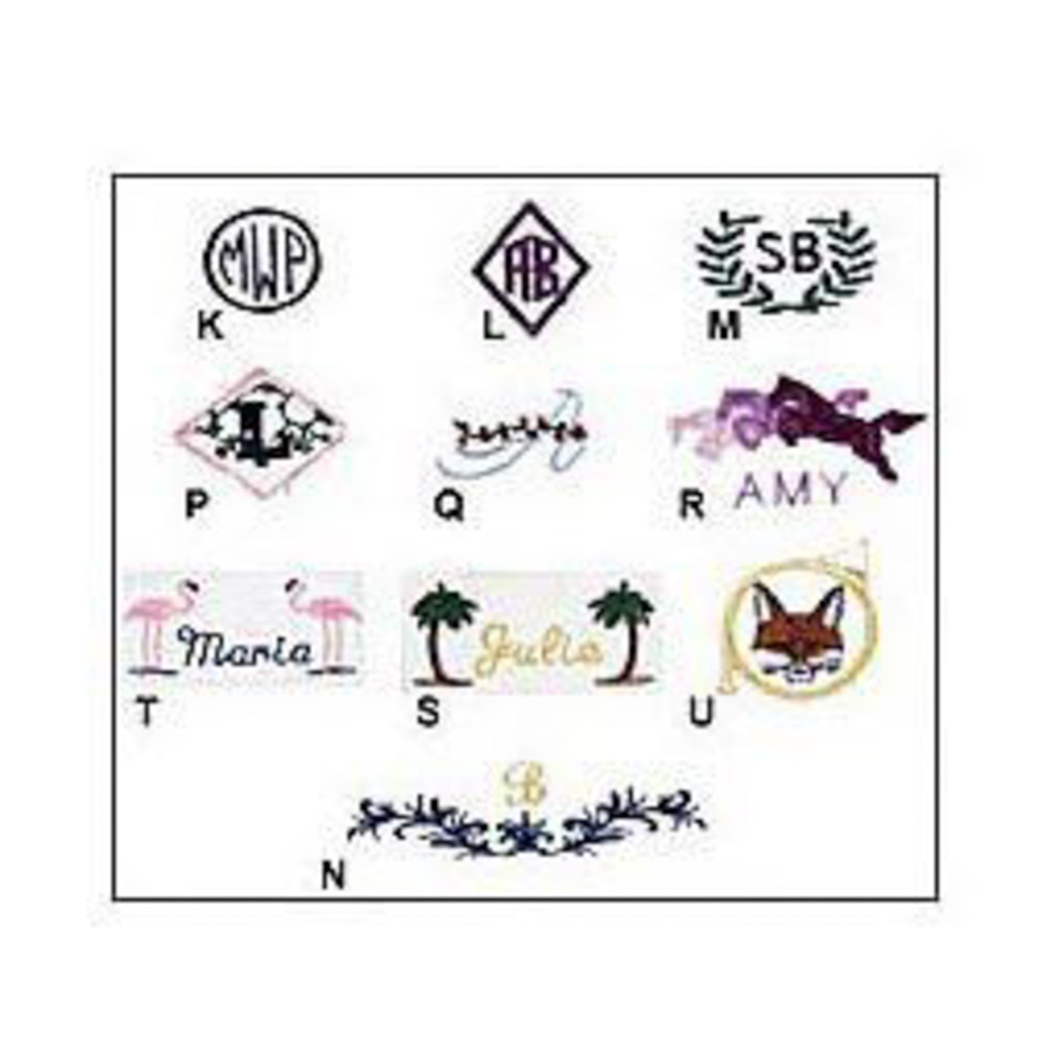 The Fancy Bag Monogram can be embroidered on most bags to embellish it with your own sense of style. Specify the style, colors and monogram information.